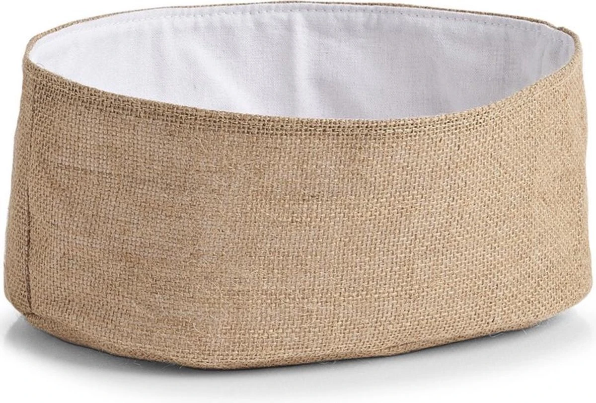 1x Jute brood serveer mandjes 26 x 18 cm met witte katoenen binnenkant. Een ovaal mandje om bijvoorbeeld broodjes en croissantjes in te presenteren/serveren. Ideaal om te gebruiken tijdens een heerlijke brunch met o.a. Kerst en Pasen. Afmeting: ca. 26 x 18 x 11 cm. Materiaal: jute met katoenen binnenkant. Reinigen: afnemen met een vochtige doek. U ontvangt 1x stuks. Zeller – Keukenbenodigdheden – Tafel dekken – Ontbijten/Brunchen/Lunchen – Broodjes/bolletjes serveren – Broodmanden.