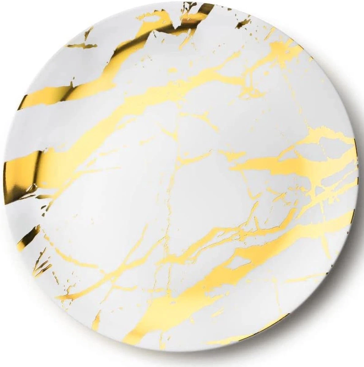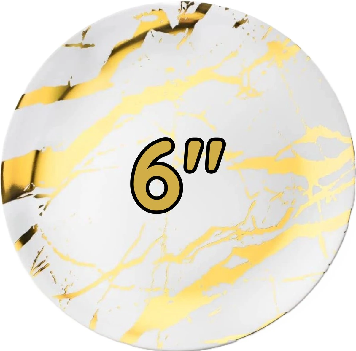 50 Marble Design Herbruikbare Feest Borden 6″ – Goud En Wit Premium Borden – Verjaardag, Feesten, Bbq Enz – Wegwerp Ronde Borden