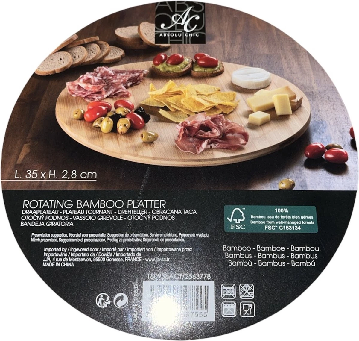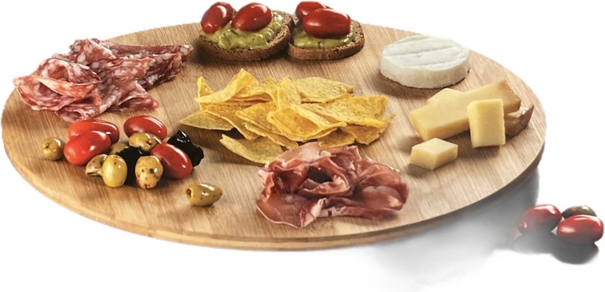 Deze handige draaiplank is gemaakt van bamboe, zorgt overal in huis voor orde en creëert extra opbergruimte en of mogelijkheden om iets te presenteren. De draaiplank is geschikt voor het serveren van tapas, kaas, borrelhapjes en nog meer lekkerneien.
