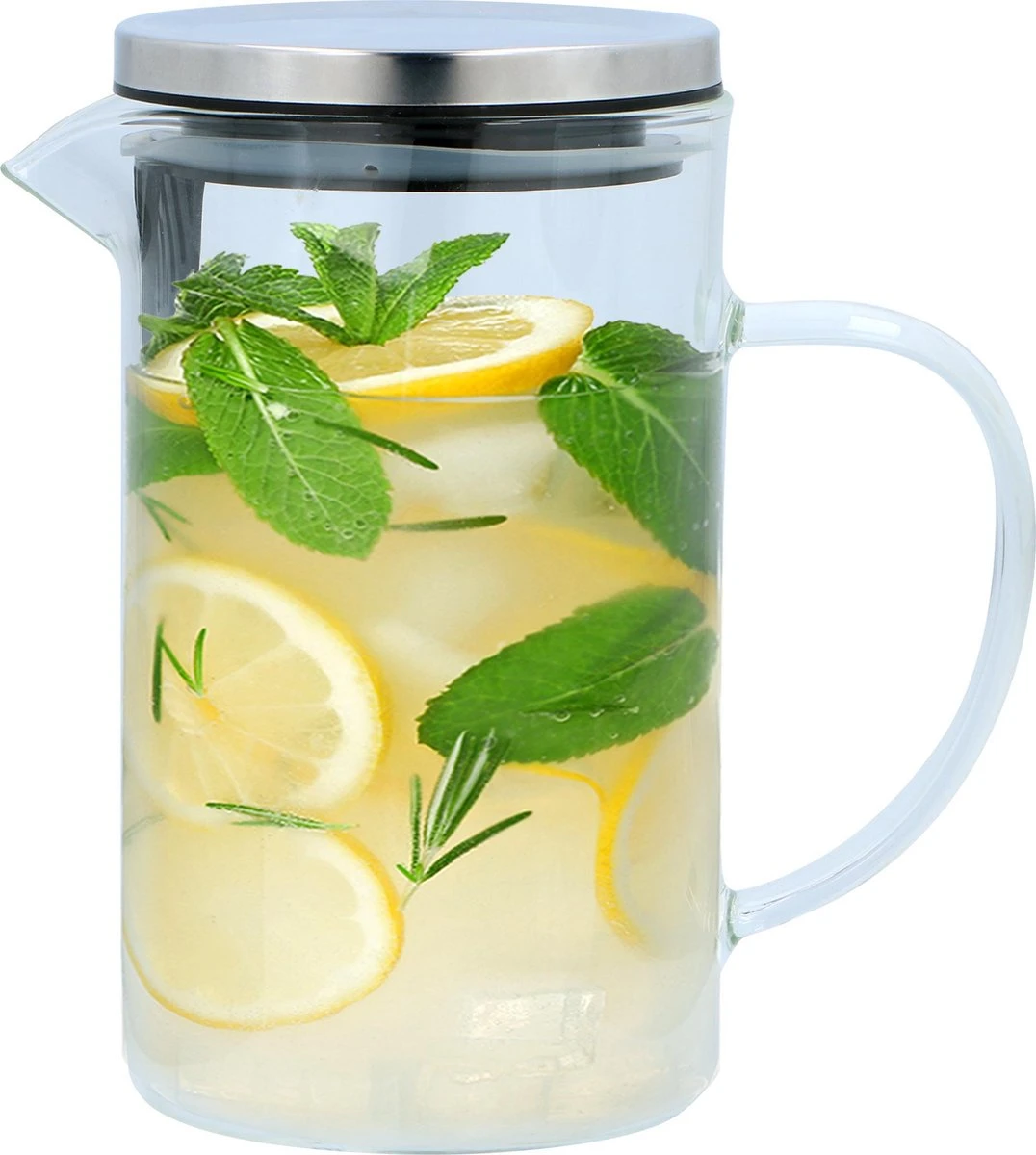 Zet jouw favoriete drankje op tafel in deze supermooie karaf! De waterkan is gemaakt van glas en heeft een handige roestvrijstalen deksel die het inschenken erg gemakkelijk maakt. Laat de zomer maar beginnen!