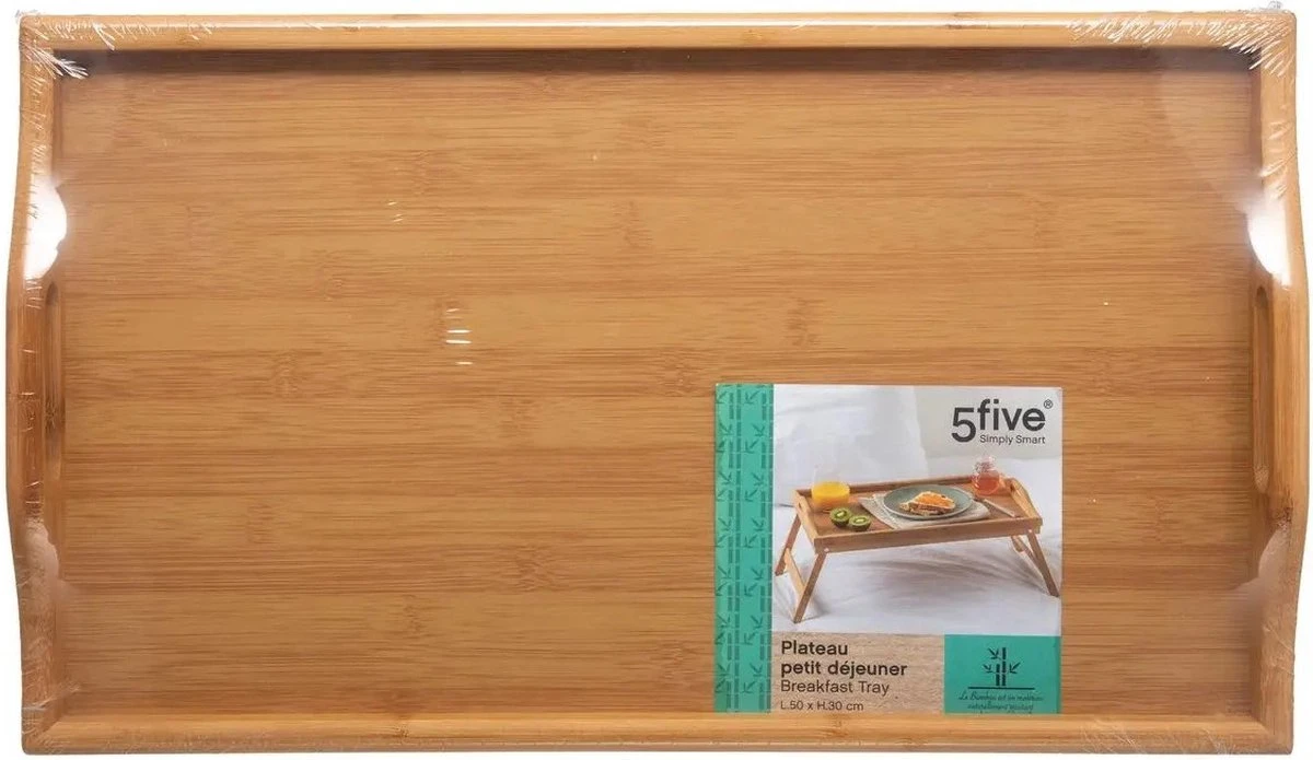 Ontbijt op bed tafeltje/dienblad rechthoekig bamboe. Dit serveertafeltje beschikt over inklapbare pootjes en handige handvaten waardoor deze ideaal is voor het serveren van een ontbijtje op bed, maar ook om bijvoorbeeld een filmpje te kijken op de laptop of om een boek te lezen. Makkelijk schoon te maken met een vochtige doek. Afmeting met uitgeklapte pootjes: 65,5 x 30 x 23 cm. Materiaal: bamboe.
