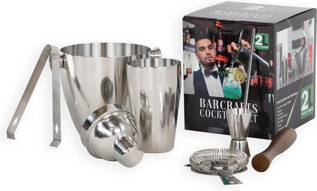De cocktail set is geheel gemaakt van roestvrij staal. Dit is praktisch want na gebruik kan alles gewoon in de vaatwasser. De shaker set wordt geleverd in een mooi verpakking en is daarom ook zeer geschikt om als cadeau te geven.