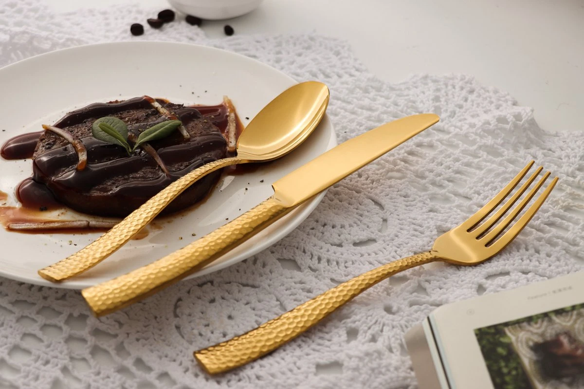 Bestekset Goud Gehamerd 24K -Zwitsers Kwaliteit-Complete Set-100% roestvrijstaal-Gold Gehamerd 24k-Goud 24K