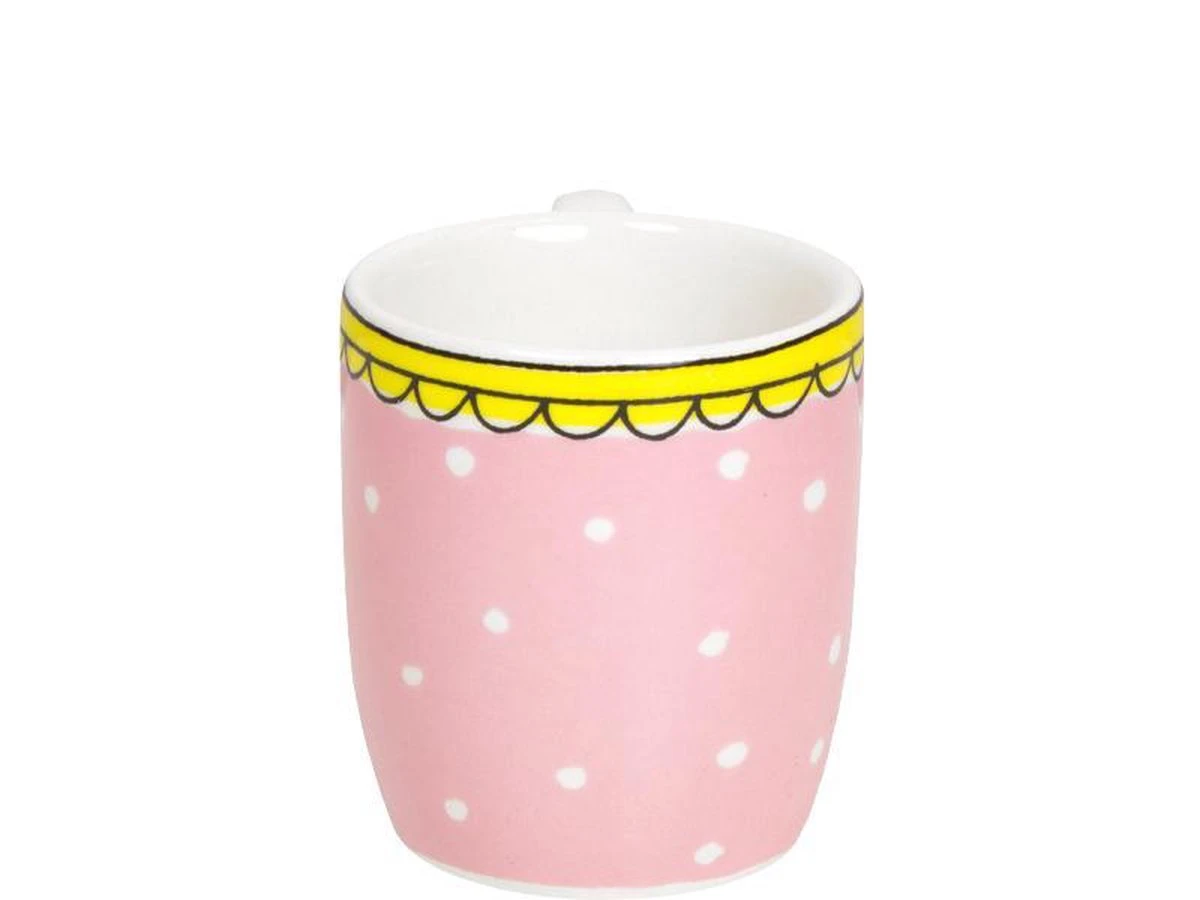 Blond Amsterdam 18 jaar! Tijd voor een feestje. De collectie Even Bijkletsen is uitgebreid met een geheel nieuw item: het espressokopje! Geniet nu ook van een heerlijke espresso geheel in Blond stijl. Het kopje is verkrijgbaar is vier verschillende prints, waaronder roze met witte stippen.