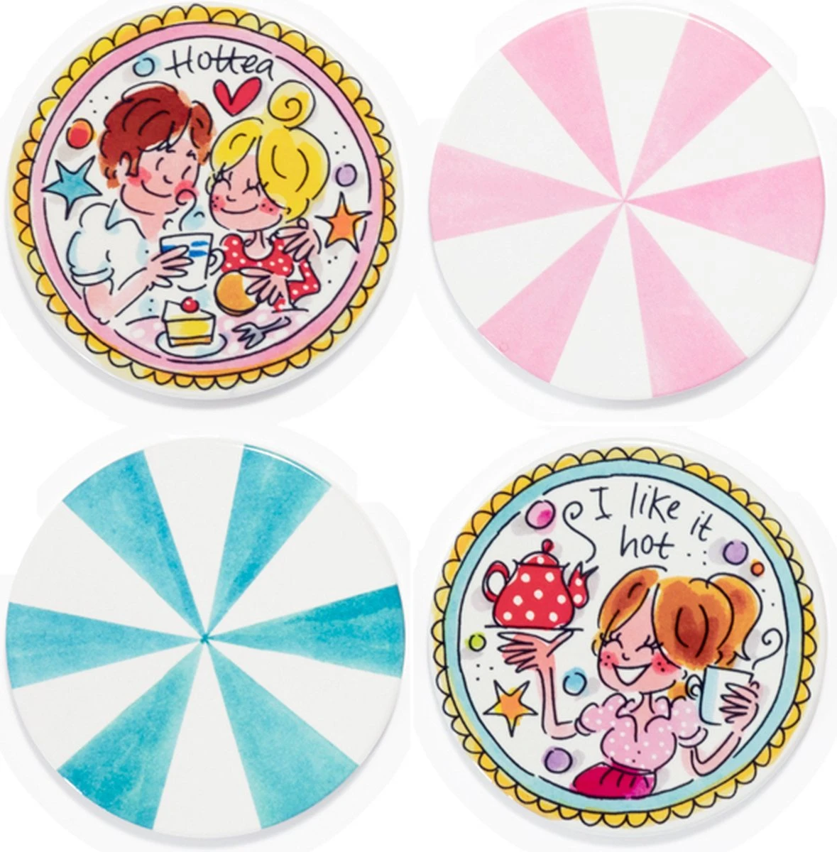 De collectie Even Bijkletsen is nog steeds de grote favoriet van vele Blond-liefhebbers. Nieuw in deze collectie zijn de aardewerk onderzetters. Ben je op zoek naar een leuk cadeau voor een housewarming, verjaardag of andere gelegenheid? Verras de gelukkige met een set van 4 originele onderzetters.