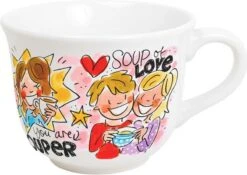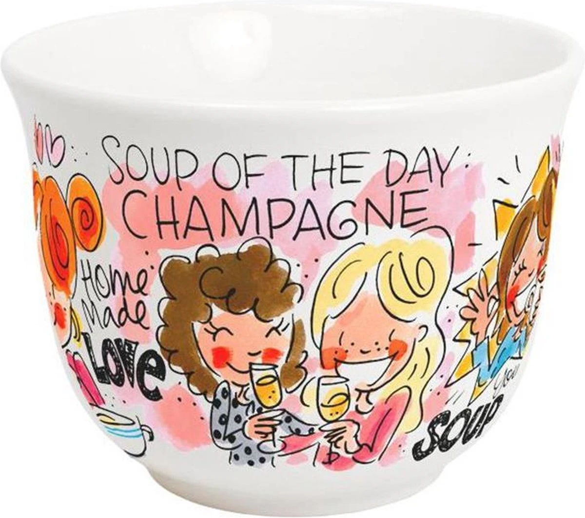 De soepkom is onderdeel van de Even Bijkletsen lijn van Blond Amsterdam. Deze collectie kenmerkt zich met opvallende en kleurrijke illustraties. Zo wordt soep eten nog gezelliger!