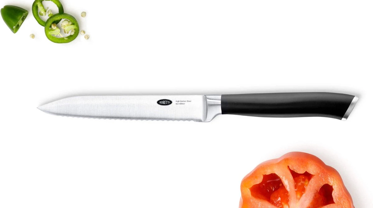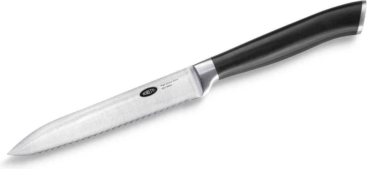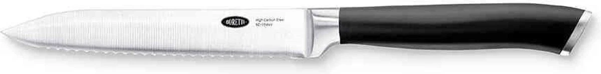 Klein gekarteld mes speciaal voor bijvoorbeeld dikschillig fruit met zacht vruchtvlees (mango, tomaat). Snijdt en serveert plakjes en stukjes. Perfect voor klein voorbereidend werk; het snijden van groenten, fruit, sandwiches en nog veel meer.