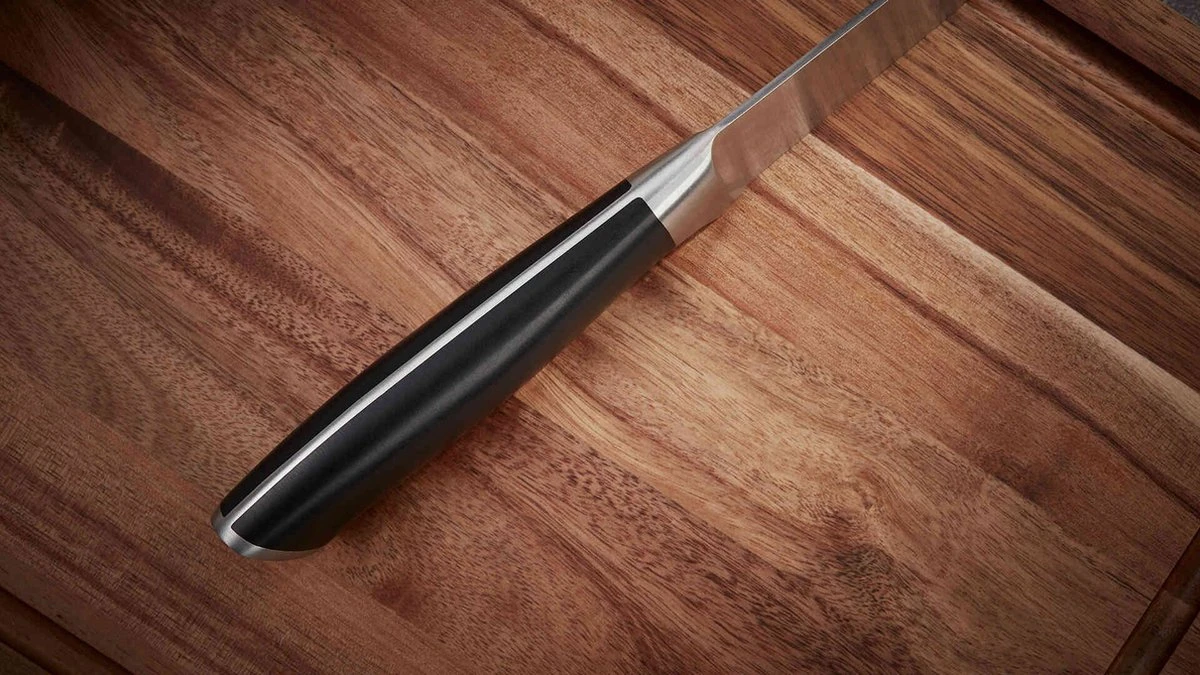 Dit universeel mes is geproduceerd van duurzaam roestvrijstaal en is makkelijk in onderhoud. Door het veiligheidsbolster en het ergonomische handvat met endcap geeft het universeel mes een professionele ervaring.