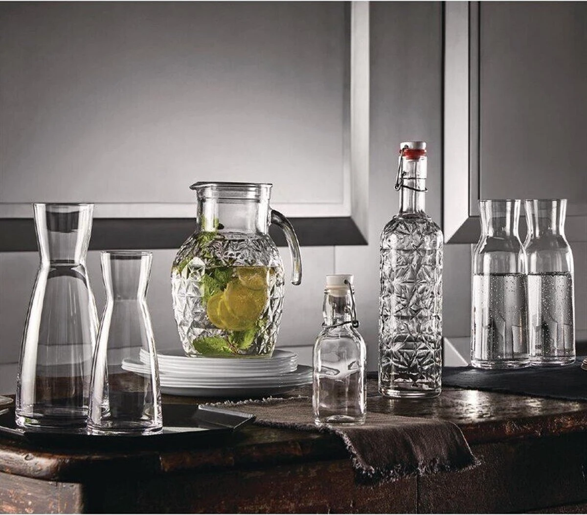 Deze Ypsilon karaf van Bormioli Rocco heeft een eenvoudig maar elegant design. Deze karaf is niet alleen geschikt voor het schenken van water en sappen, ook voor het serveren van rode wijn is deze karaf zeer geschikt. De schenkrand is afgeslepen met een laser, waardoor de karaf niet druppelt bij het uitschenken. De brede vorm maakt het mogelijk om ook ijsblokjes en fruit in de karaf te presenteren. En na gebruik reinig je deze karaf gemakkelijk in de vaatwasmachine. De inhoudsmaat van deze karaf is 1,08 liter.