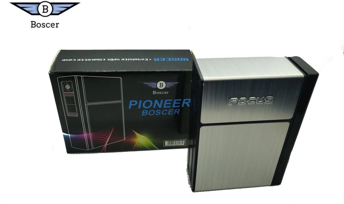Boscer® – 2-in-1 elektrische aansteker + sigarendoosje! Het sigarettendoosje (zilver) biedt plek voor 20 sigaretten en zorgt ervoor dat jij nooit meer uitgedroogde sigaretten hebt. Geniet van de beste smaak, ook na een aantal dagen. Met de ingebouwde elektrische aansteker heb je altijd een vuurtje bij de hand. Wind is geen probleem meer! De aansteker is op te laden met een USB kabel. Deze USB is uiteraard meegeleverd. Multifunctioneel en in luxe design!