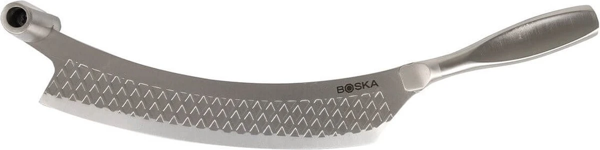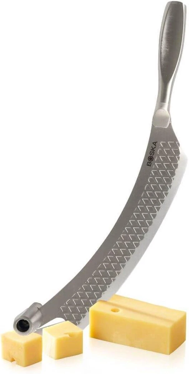 Met het BOSKA Hollands Kaasmes Monaco+ is het snijden van rechte stukken kaas een fluitje van een cent. Dit vaatwasserbestendige mes is gemaakt van roestvrijstaal. Het lemmet is non-stick door het wafelpatroon en BSF™. Met een wiegende beweging snij je ook veilig en eenvoudig door harde kaaskorsten en pizza heen.