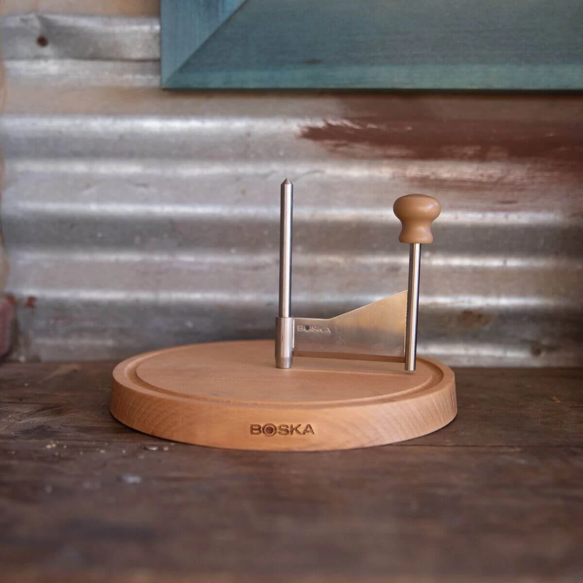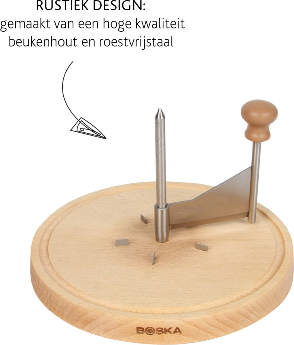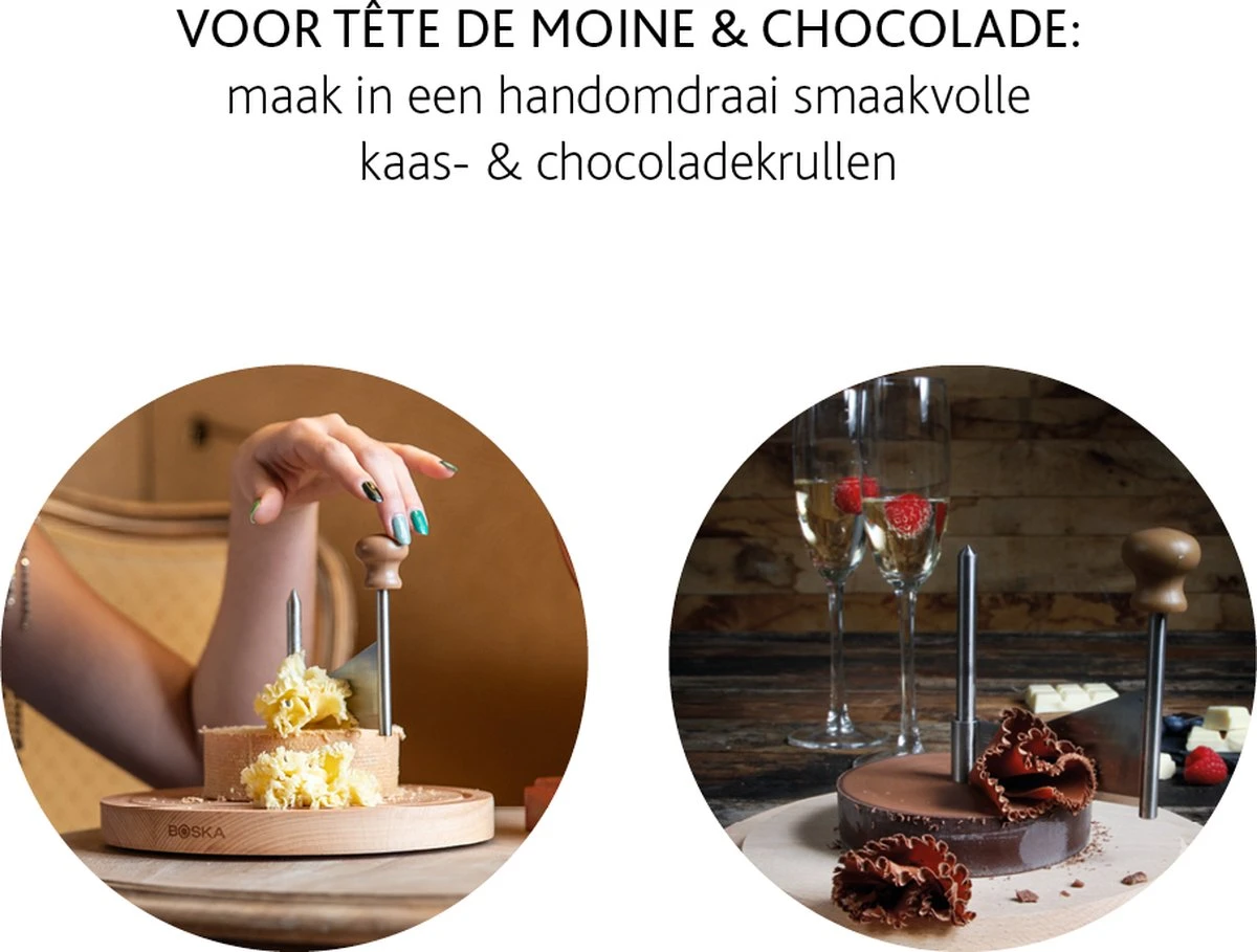 Je maakt de mooiste kaaskrullen met deze beukenhouten kaaskruller. De vijf pinnetjes in het plateau zorgen voor een extra goede grip op je Tête de Moine kaas. Zo weet je zeker dat de kaas goed op zijn plek blijft zitten, als je het roestvrijstalen mes ronddraait. De kaaskruller is eenvoudig te demonteren. Was hem na gebruik even met de hand af en hij is zo weer klaar voor gebruik.