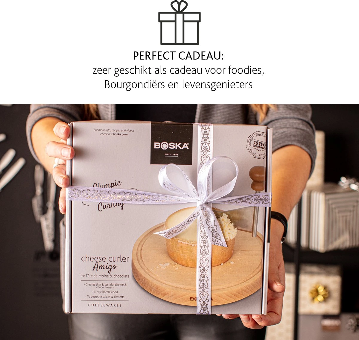 De Kaaskruller Amigo van BOSKA is perfect om cadeau te doen aan echte foodlovers en levensgenieters. Dus ben je op zoek naar een uniek en origineel cadeau voor bijvoorbeeld Kerst, een bruiloft, Vaderdag en Moederdag, Valentijnsdag of een verjaardag? Dan hoef je niet langer te zoeken. Deze kruller is geschikt als cadeau voor zowel mannen als vrouwen en past bij elke gelegenheid. Doe er een mooie strik omheen en je hebt het ultieme cadeau te pakken!