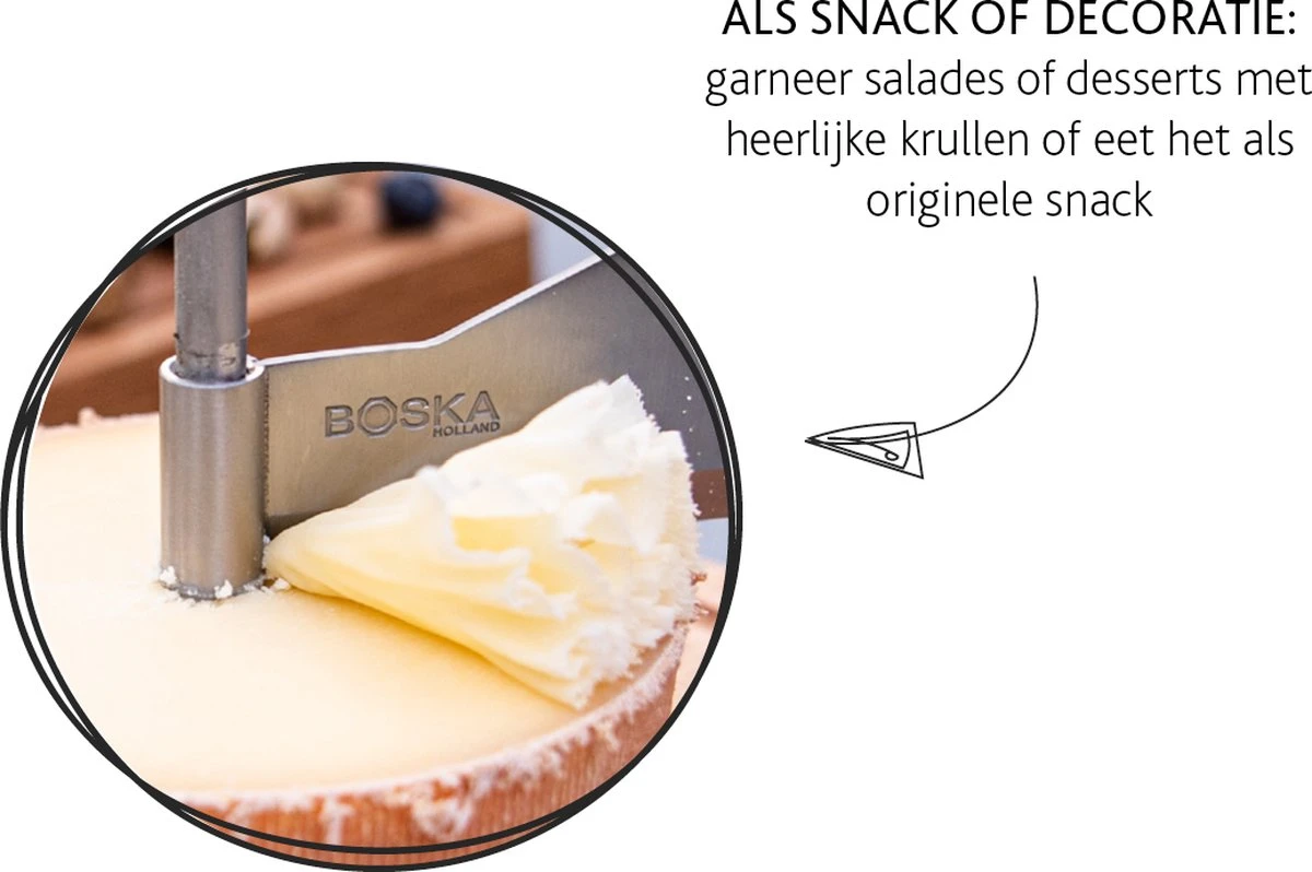 Snoep tijdens een borrel van de lekkerste kaaskrullen, die je in een handomdraai met deze Kaaskruller Amigo van BOSKA maakt. Of geef een finishing touch aan je favoriete gerechten. De kaaskrullen zijn heerlijk op een vers gemaakte pasta of frisse salade. Ook geschikt voor het maken van smaakvolle chocoladekrullen!