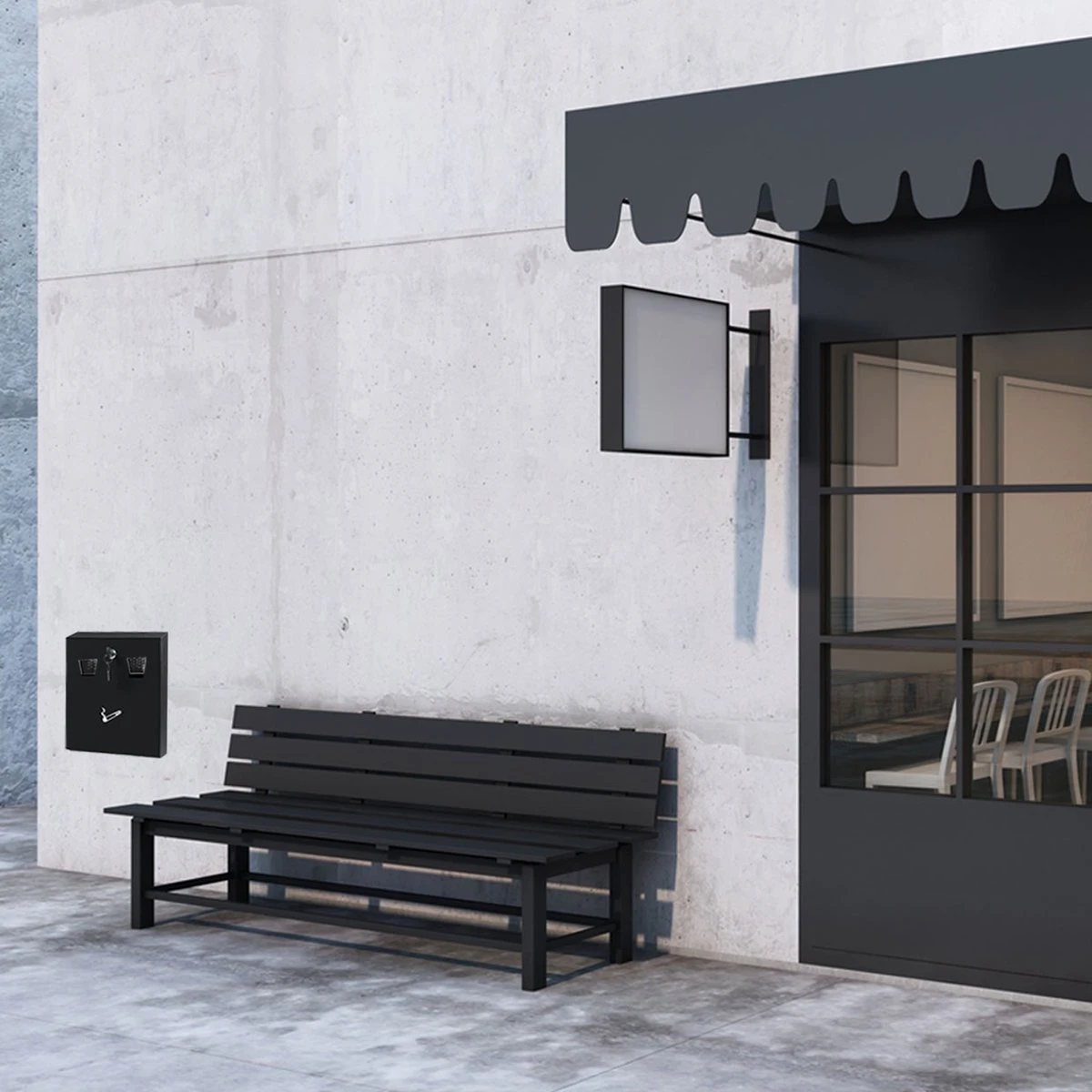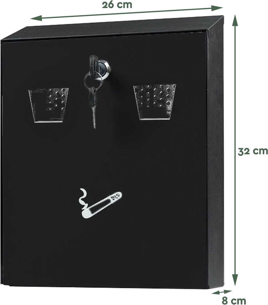 De wandasbak van BRASQ draagt bij aan een schone en opgeruimde omgeving als het gaat om sigaretten of sigaren peuken. Daarnaast biedt de asbak van BRASQ een aantal grote voordelen: Vlamdovend Door de twee openingen aan de voorzijde is er ruimte om de peuken weg te gooien. Daarnaast is er een metalen opvangbak waar de peuken in terecht komen. Door deze constructie, is er een beperkte zuurstof toevoer en doven de peuken snel. Dit komt de veiligheid ten goede. Eenvoudig en snel schoonmaken De asbak is via de voorzijde te openen/ vergrendelen met een cilinderslot. Je kunt de asbak eenvoudig open en ledigen, door de metalen binnen emmer eruit te pakken en leeg te schudden. Door het ontwerp van de asbak blijven de peuken altijd droog en uw entree schoon. Duurzaam De wandasbak is gemaakt van gegalvaniseerd en poedercoated staal. Dit betekent dat de asbak weersinvloeden van buitenaf goed kan hebben én lang mee gaat. Tot slot, de asbak is geschikt voor iedereen die op een professionele wijze de sigarettenpeuken wilt opvangen, waardoor uw omgeving opgeruimd en schoon blijft. De asbak kan enkel aan de muur worden gemonteerd. Het bevestigingsmateriaal is inbegrepen. Specificaties: Afmetingen product: 32 x 26 x 8 cm Product gewicht: Bevestigingsmateriaal: Inclusief Staaldikte 6 mm Type montage: Wand Type slot: Cilinderslot, inclusief twee sleutels Garantie: 1 jaar