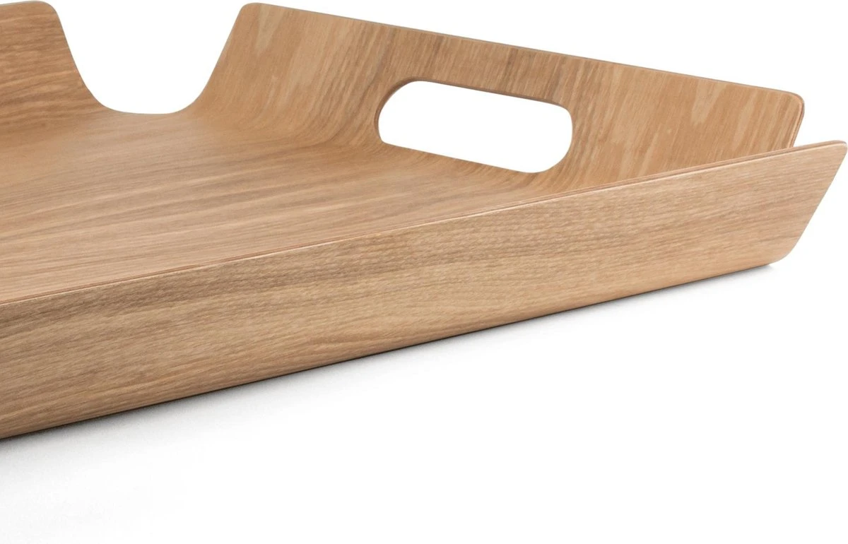 Het Madera dienblad van Bredemeijer heeft een retro design. Het is gemaakt van licht, maar zeer sterk hout en voorzien van twee uitsparingen om het dienblad te dragen. Dankzij de royale afmeting van dit dienblad is het uitermate geschikt voor op een hocker of poef.