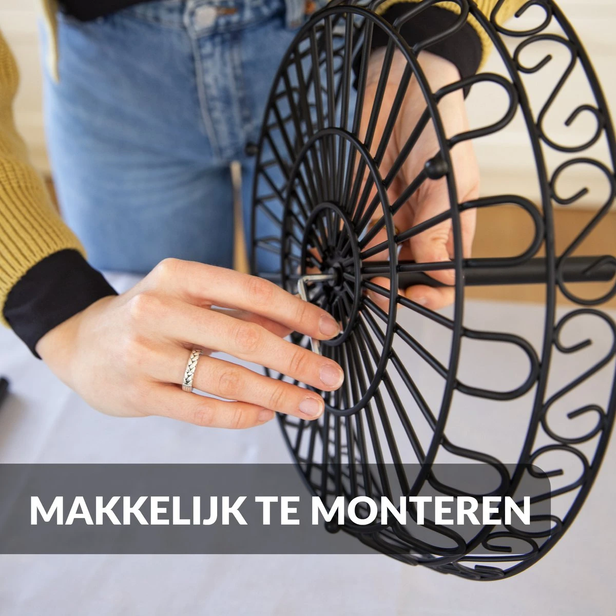 Door het donkere metaal en speelse ontwerp geeft de etagère je keuken een bijzondere flair. Een musthave voor in elke keuken, kantoor of andere ruimtes.