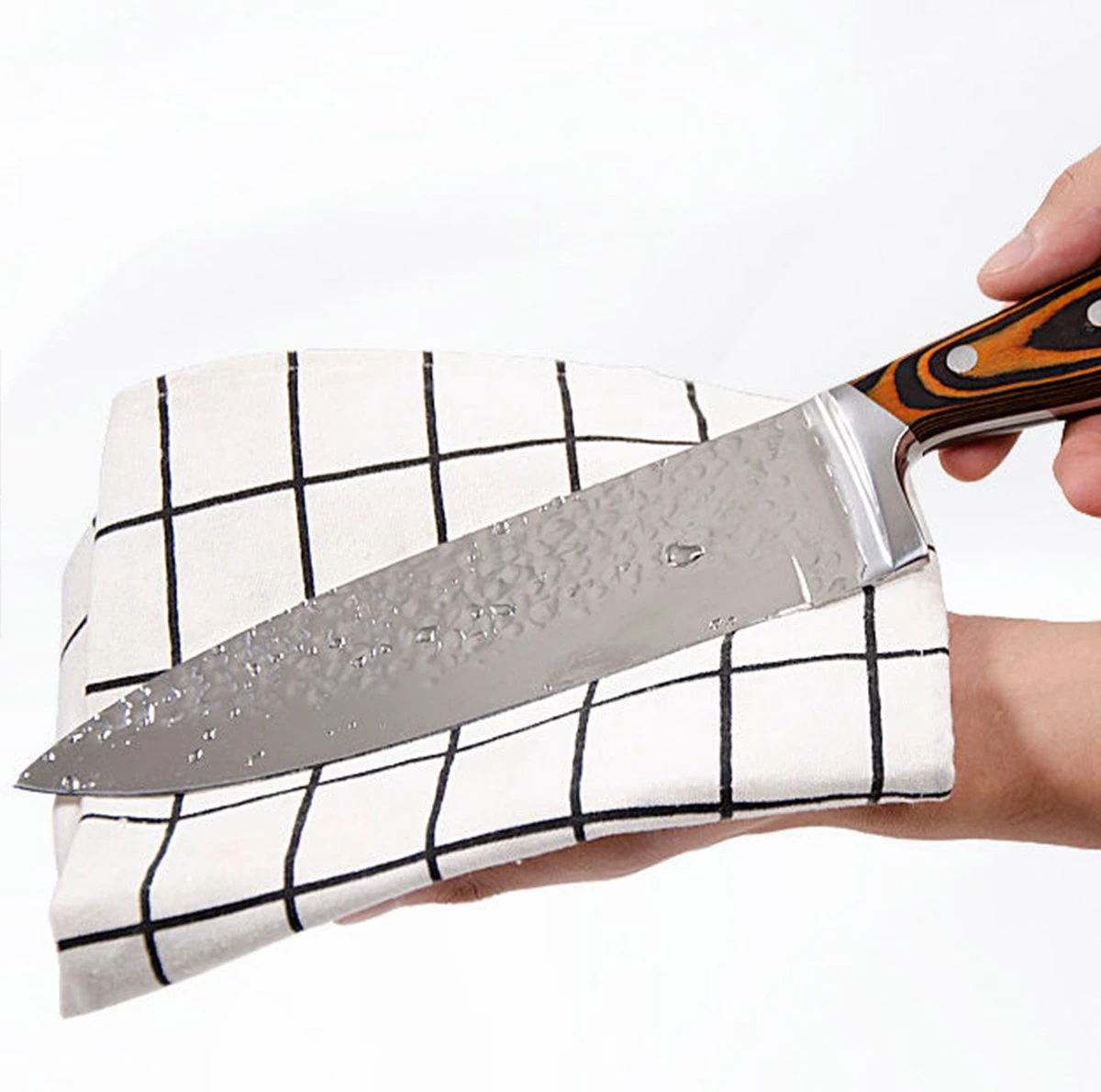 Wanneer u gaat snijden met een santokumes kunt u dit het beste doen op een houten snijplank, het mes wordt sneller bot op harde materialen. “Santoku” betekent “drie deugden”, wat er op duidt dat de messen voor verschillende toepassingen gebruikt worden. Zo zijn ze geschikt voor vlees, vis en groenten.