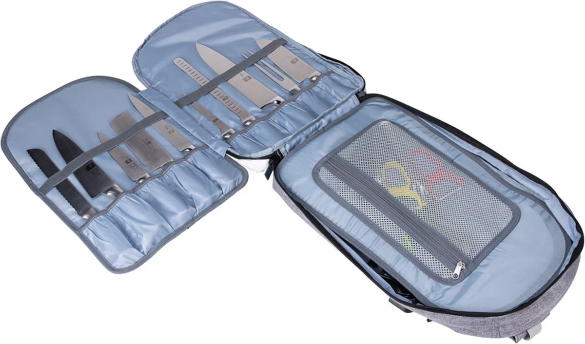 Chefs Fashion – Rugzak voor koks – Foudraal – Messenmap – Voor 22 messen – met USB aansluiting.