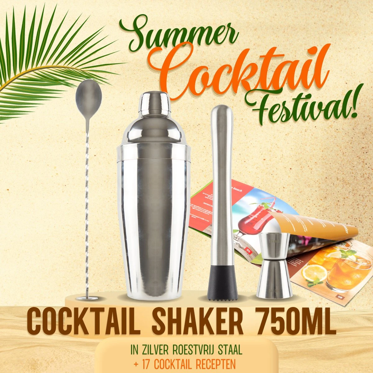 Cocktail Set – Zilver – 750ml – Cocktail Shaker Set – Cocktail Stamper – 17 Recepten – 13 Delig