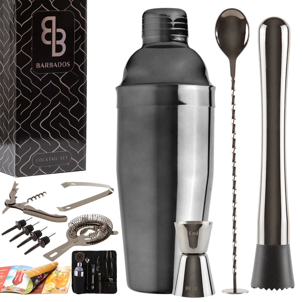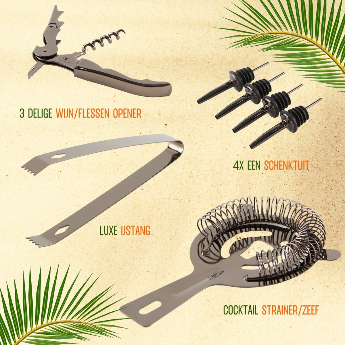 Deze Luxe 13-Delige Cocktail set van Barbados, Is precies wat jij nodig hebt om de juiste cocktail te maken. De Cocktailshaker van (750 ML) zorgt ervoor dat je optimaal kan genieten met je gezelschap of alleen…. Met deze set kan je de lekkerste Cocktails maken, Denk aan Sex on the Beach, Mojito, Margarita een Gin Tonic en noem maar op.
