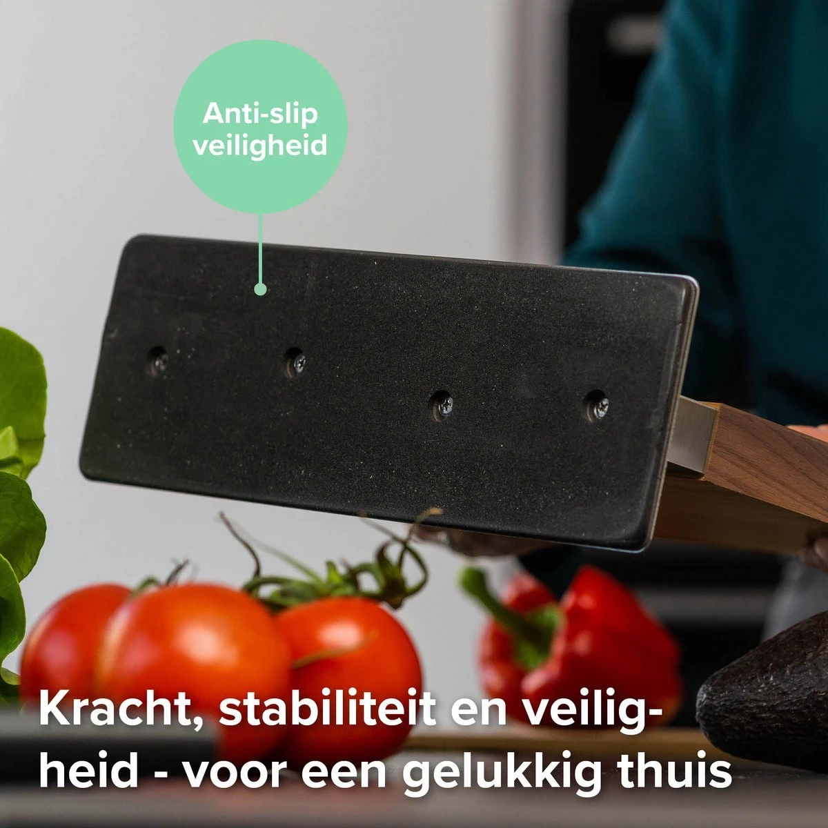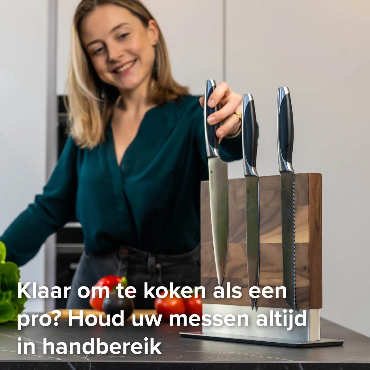 Waarom je druk maken om een saaie messenblok als je ook kunt gaan voor een magnetische schoonheid zoals deze? Vervaardigd uit sterk walnoot hout wat bijdraagt aan het schitterende design die in elke keuken elegant staat.
