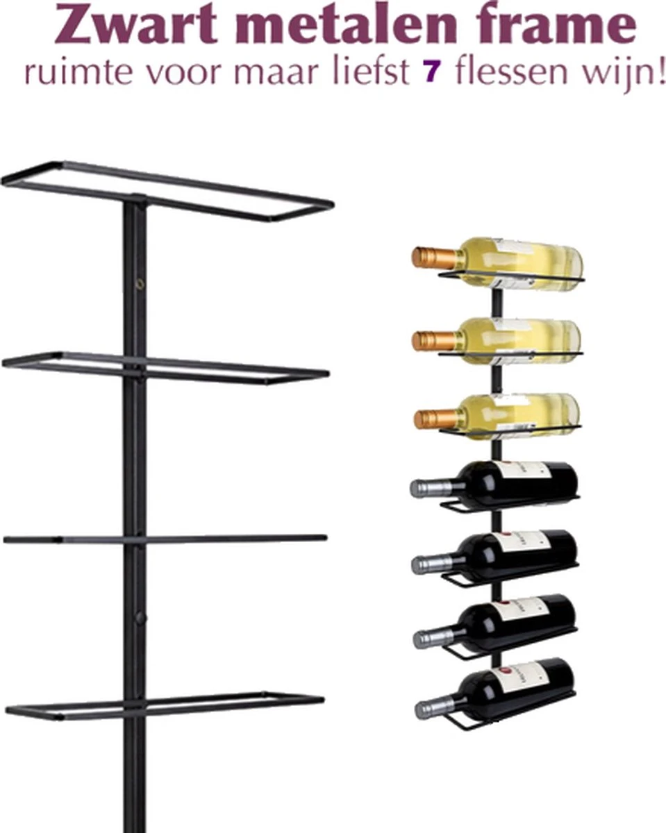 Zoek je een wijnrek wat een echte eyecatcher is om jouw kamer af te maken? Haal je wijnflessen uit de kast en plaats dan dit moderne wijnrek van Cosas in je keuken of woonkamer. Bewaar jouw zeven favoriete flessen voortaan super stijlvol! Omdat het wijnrek van metaal en zwart van kleur is, past dit wijnrek zo in het interieur van ieder huishouden.