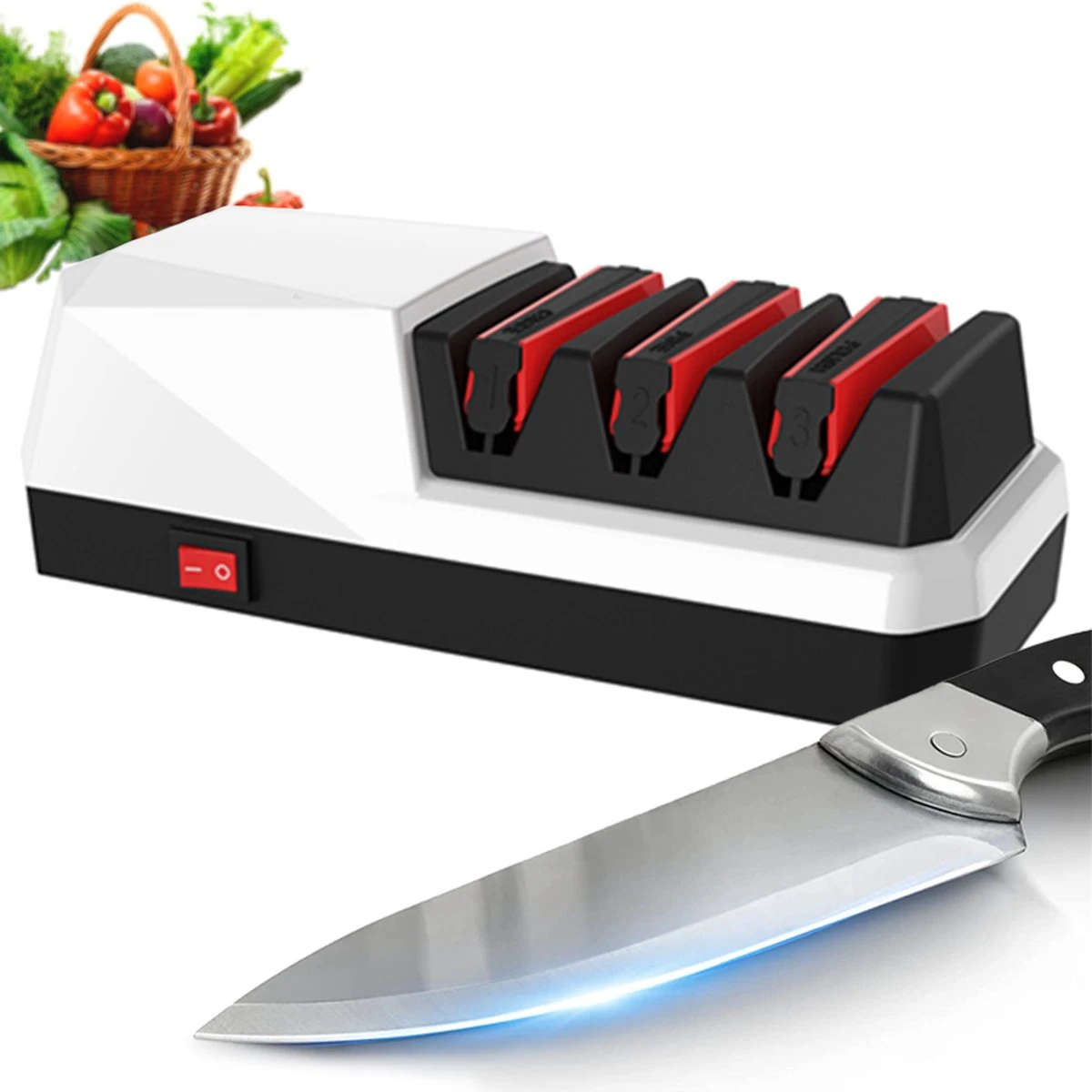 De elektrische messenslijper gebruikt een 50W koperen motor, die een sterke prestaties heeft en geluiden vermindert. De 15 graden groef slijpt het lemmet tot 15 graden scherpte, wat de sterkte en duurzaamheid kan maximaliseren. Daardoor bereiken de messen de scherpste toestand, waardoor het snijden, hakken en snijden effectiever en sneller wordt.