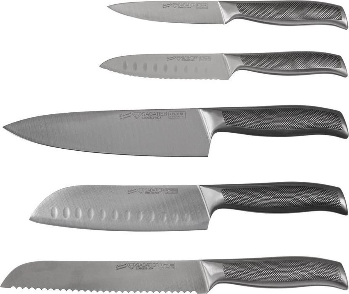 - Ieder mes uit het Diamant Sabatier Riyouri messenblok is op Japanse manier geslepen en daardoor vlijmscherp.