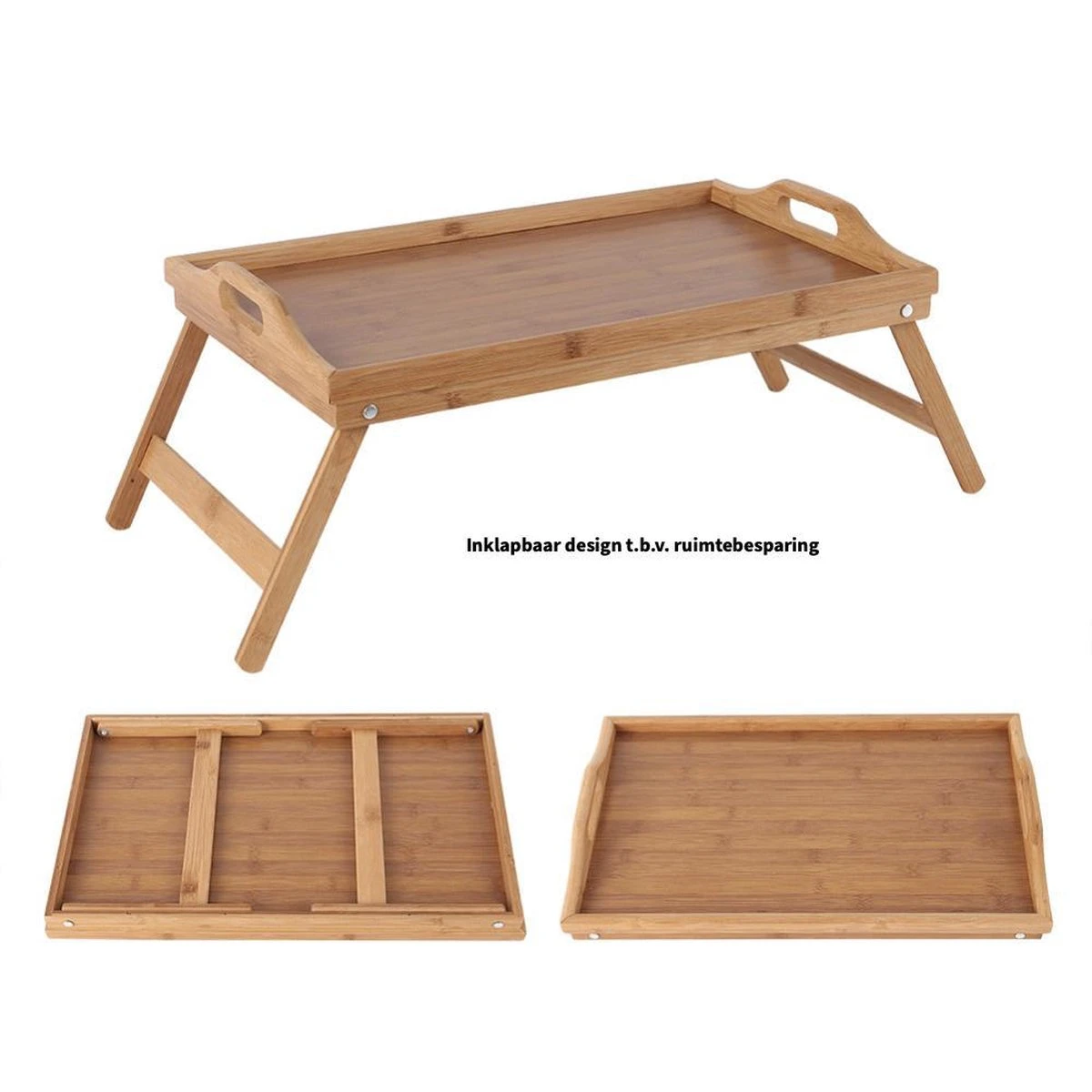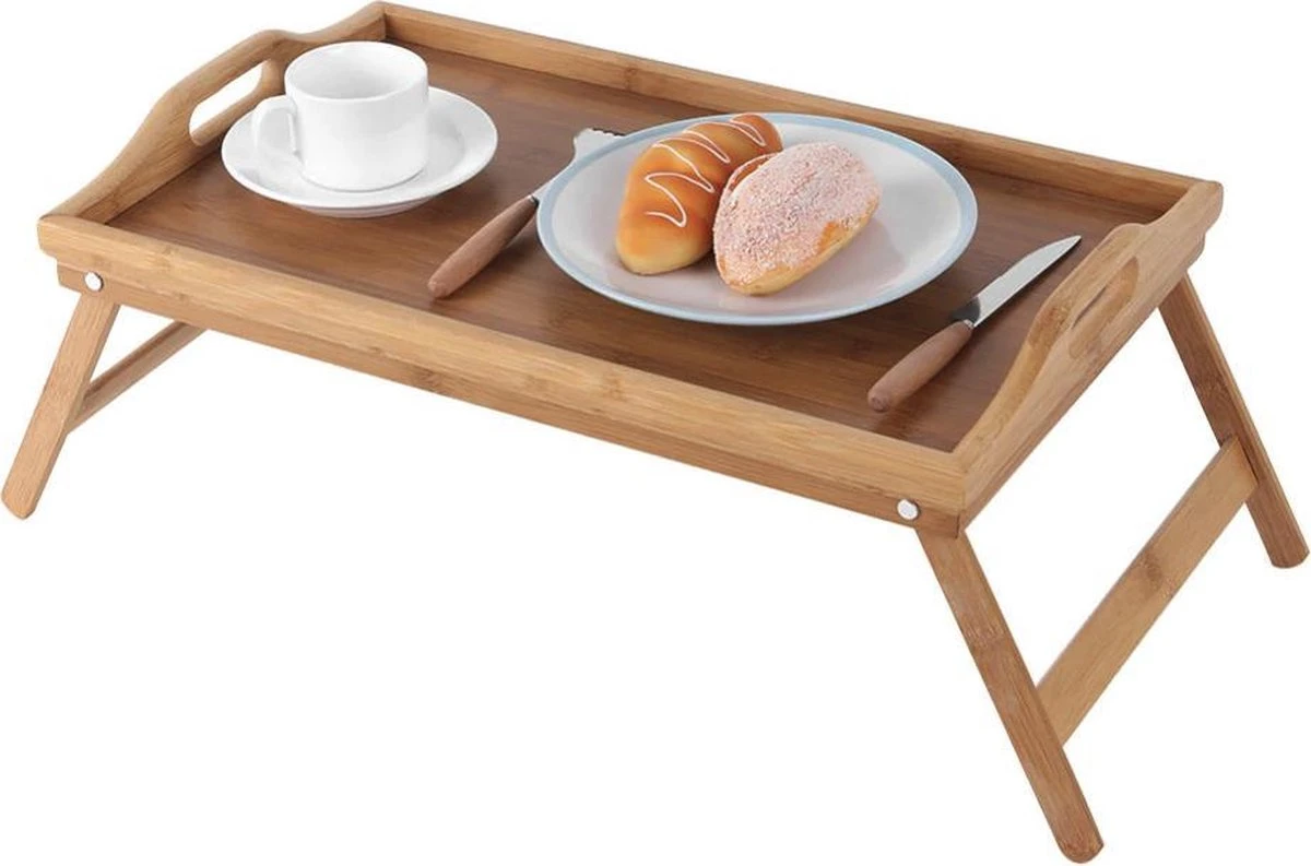 Dit super handige dienblad voor ontbijt op bed is gemaakt van duurzaam bamboe hout en MDF. Hierdoor is het dienblad stabiel en stevig. Je kunt de bedsteun in bed gebruiken om te ontbijten, een kopje thee te drinken of te lezen. Het kan ook dienen als bijvoorbeeld een laptopsteun wanneer de vier poten worden uitgeklapt.