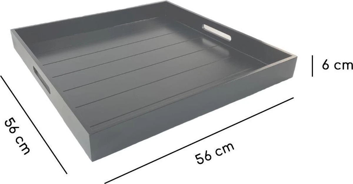 WDMT™ XL Dienblad XL | 56 x 56 cm | Extra groot houten dienblad met afneembare coating en handvaten | Zwart