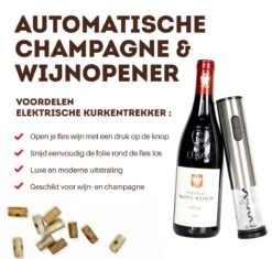 Elektrische Kurkentrekker Deluxe Voor Wijnkurken – Automatische Champagne & Wijnopener Set – RVS Wijnflesopener – Wijn Accessoires