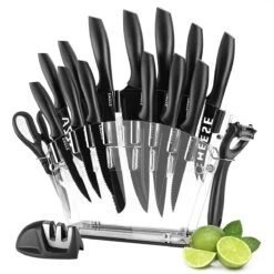 De messen blijven lang scherp door de hoge kwaliteit roestvrijstaal. Wanneer de messen wat scherpte verliezen kunnen deze gemakkelijk worden geslepen door de bijgeleverde messenslijper. De messenslijper heeft een scherpe slijphoek van 15° aan beide zijden van het mes. De messen zijn geschikt om te reinigen in de vaatwasser.