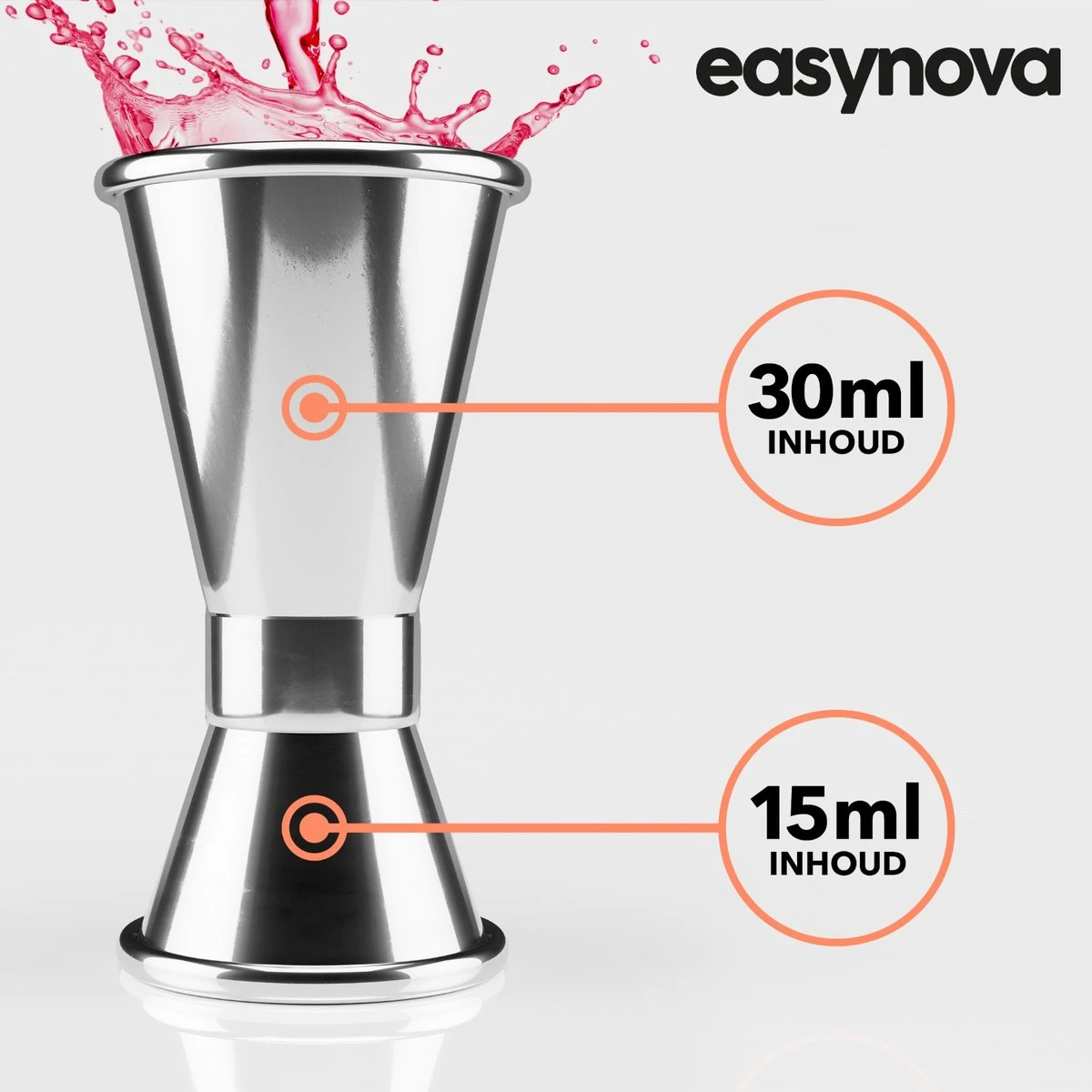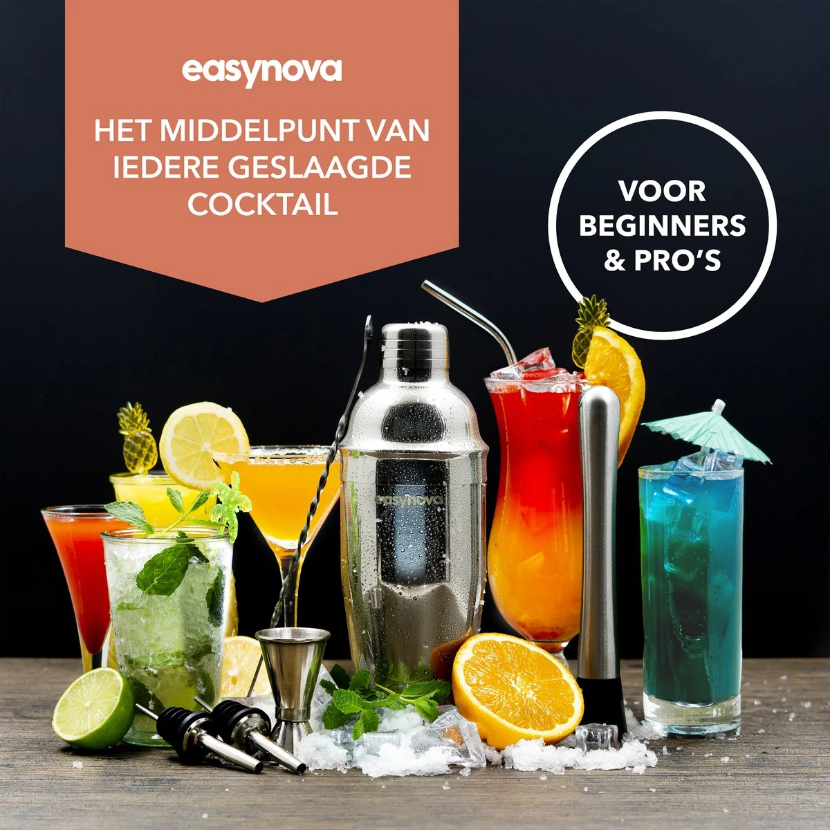 Het prachtige roestvrijstalen-ontwerp van Easynova® maakt het he-le-maal af. Al onze materialen zijn enkel van de beste kwaliteit. Dit maakt deze cocktail set erg duurzaam en betekent dat de accessoires jarenlang meegaan. Ze zijn ook in een handomdraai schoon te maken. Even omspoelen en je bent klaar!