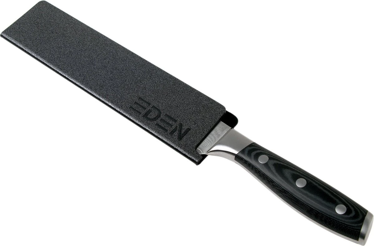 * Deze Eden mesbeschermer beschermt je keukenmessen tegen krassen en beschadigingen. Leg je mes met deze beschermer eromheen zonder zorgen in de keukenla. De beschermer klemt zich goed vast om het mes. Het lemmet zal niet per ongeluk uit de beschermer schieten.