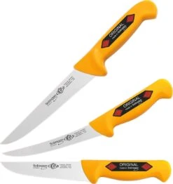 Met deze Eikaso 3-delige messenset heb je alle messen om direct aan de slag te gaan in de keuken. Een uitbeenmes om het vlees van botten te halen, voor het onthuiden en ontvliezen van vlees en voor het verwijderen van pezen, Een flink vleesmes voor alle grote taken, een universeelmes voor alle overige klusjes.