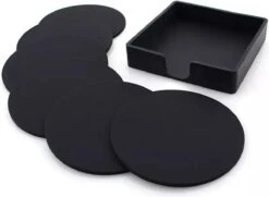 De set voegt behalve een praktische oplossing ook een mooie accessoire toe aan uw tafel. Geniet van de strakke moderne uitstraling en laat je gasten, gezin of ander bezoek met een gerust hard hun drankje op tafel zetten. Deze duurzame set van siliconen is flexibel in het gebruik en zelfs een hulpmiddel om draaidoppen en groentepotjes te openen door de krachtige antislip eigenschappen van de onderzetter. Maak je ook vooral geen zorgen dat de onderzetters wegglijden. De lichtgewicht onderzetters kunnen opgeborgen worden in de meegeleverde en bijpassende houder. Hiermee ziet na gebruik uw tafel er weer netjes uit.