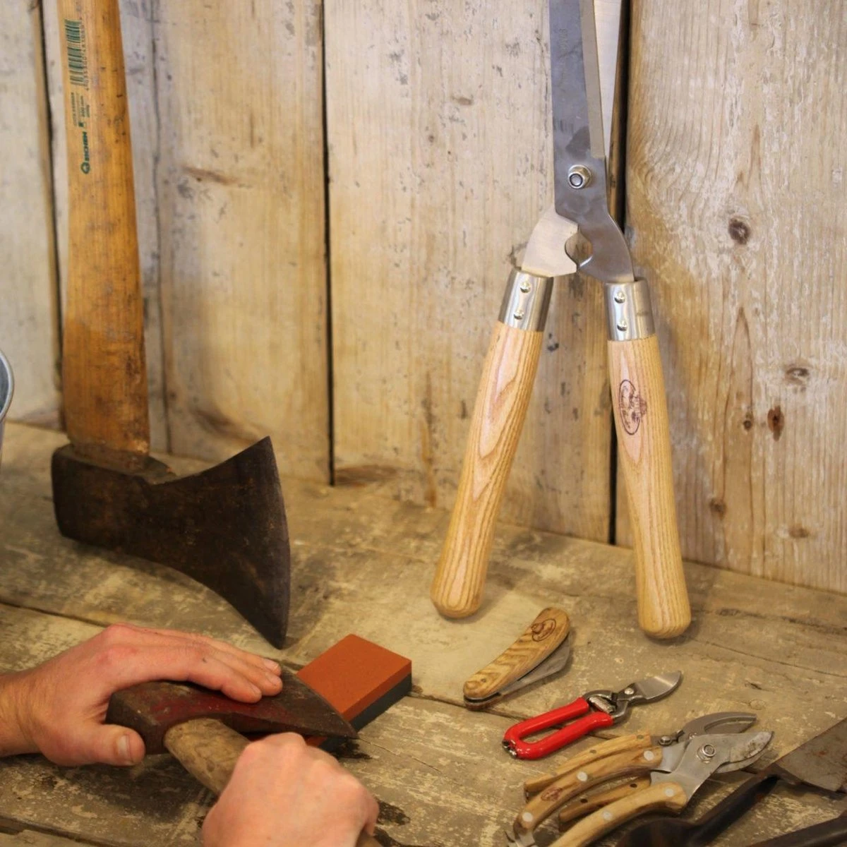 In de tuin werken gaat natuurlijk niet zonder gereedschap. Het is dan ook zeer belangrijk dat deze gereedschappen goed scherp zijn. Met deze slijpsteen zijn je gereedschappen altijd vlijmscherp! De slijpsteen heeft twee verschillende korrelmaten. Laat de slijpsteen een uur in het water staan, begin bij de oranje zijde die een korrelmaat kent van 180 en scherp daarna de grijze kant met een korrelmaat van 280.