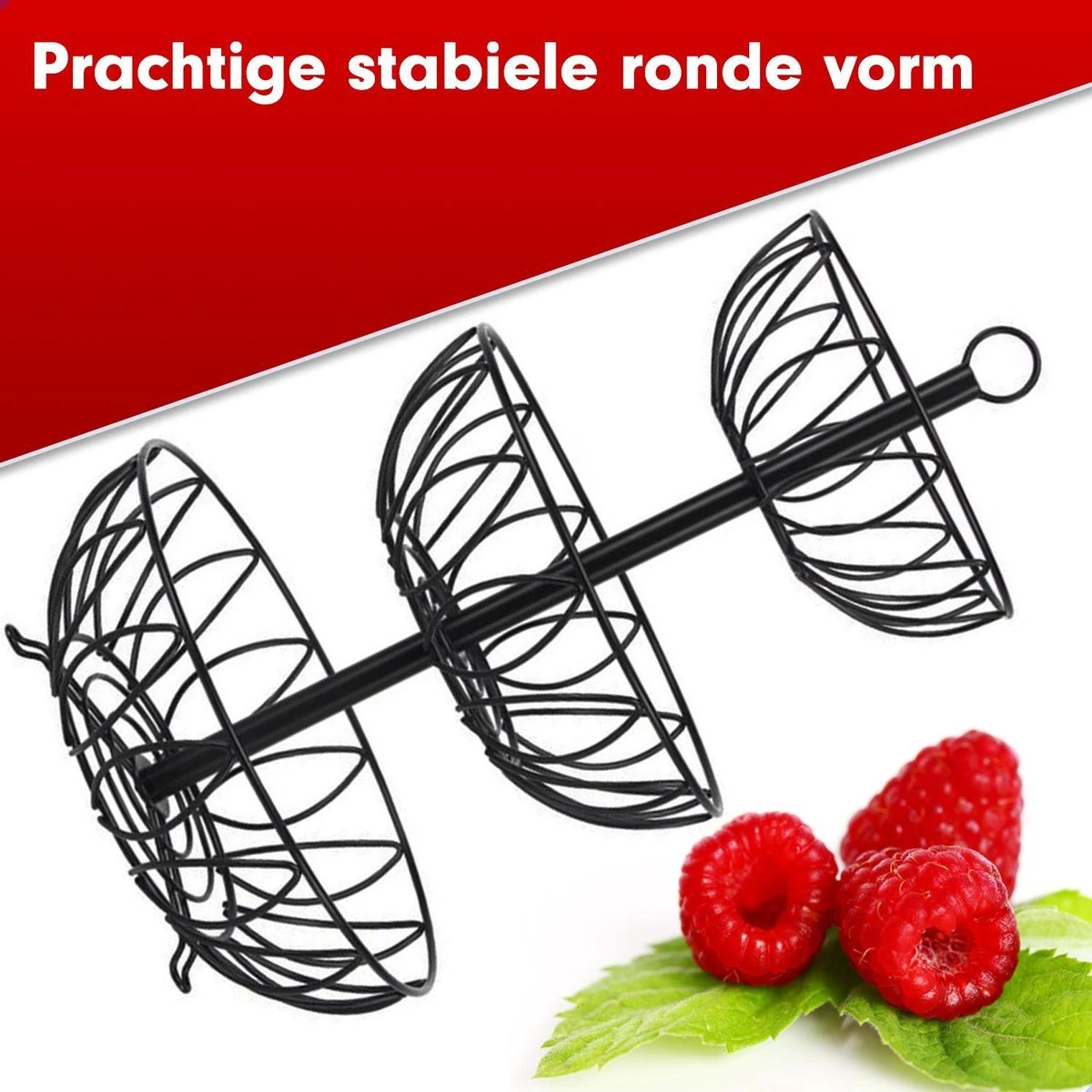 Eenvoudiger constructie – Schroef eenvoudig de drie manden en drie stangen aan elkaar met de meegeleverde inbussleutel. De fruitschaal is klaar voor gebruik.