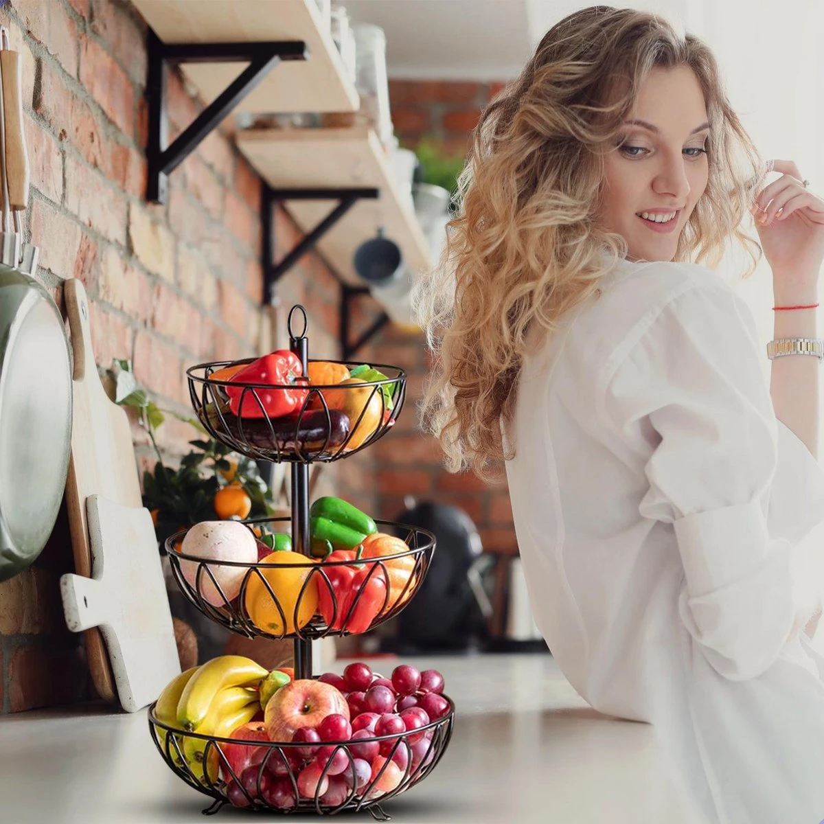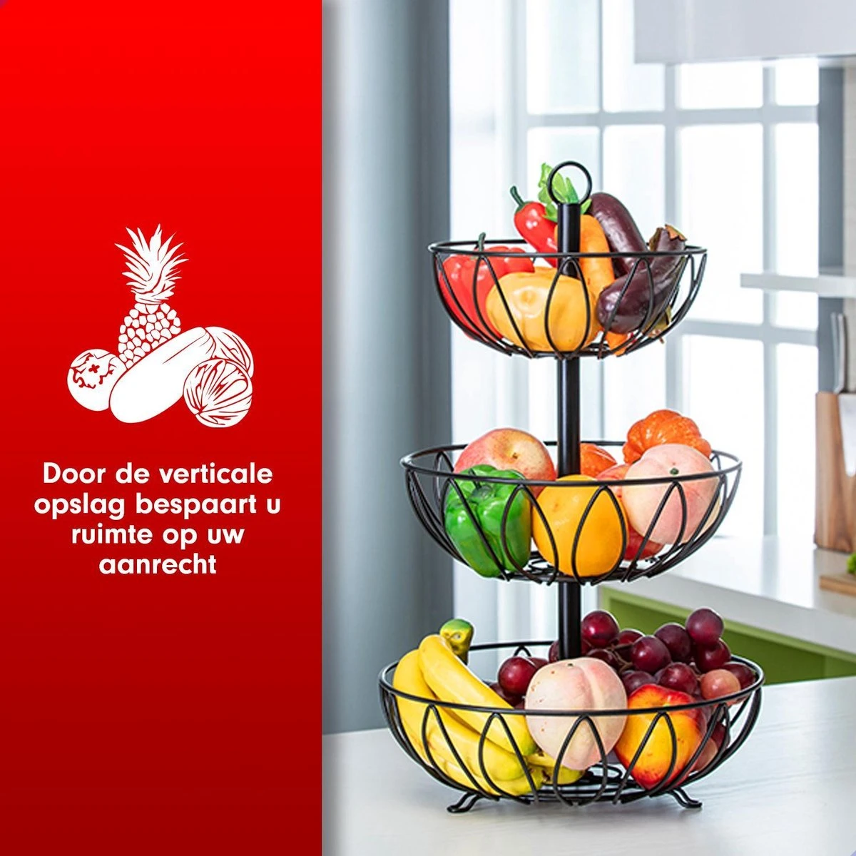 Extra ruimte – Heeft u extra ruimte nodig? Deze fruitetagere heeft meerdere verdiepingen en biedt veel opbergruimte voor alles van A-nanas tot Z-ucchini. Eindelijk kunt u zich verheugen op vrije ruimte en werkblad in uw keuken. En het handvat aan de bovenkant maakt het gemakkelijk mee te nemen.
