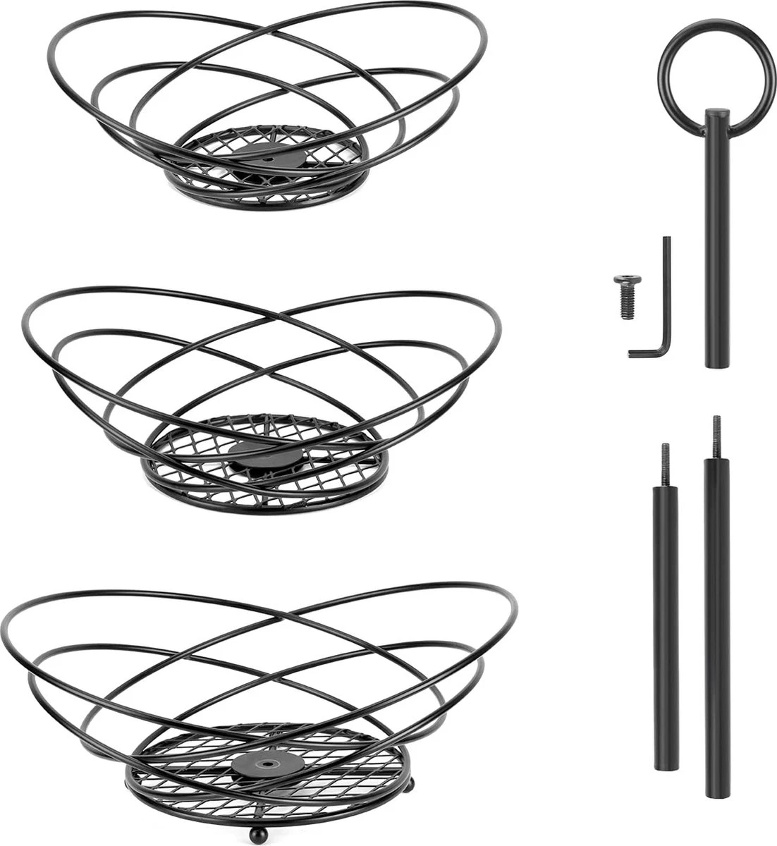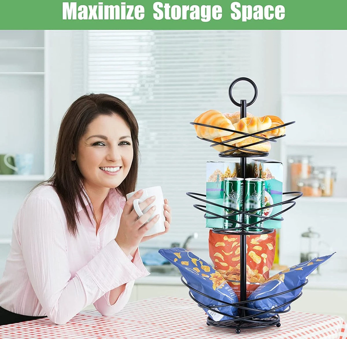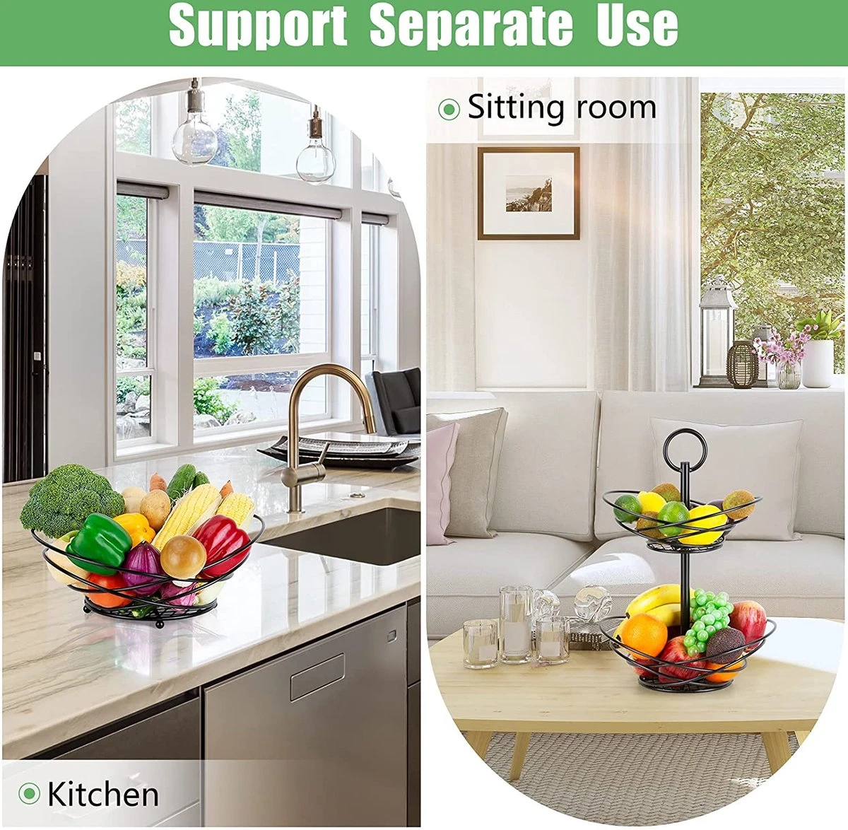Verschillende gebruiksscenario’s: De fruitmand met 3 niveaus kan niet alleen worden gebruikt om fruit in te bewaren, maar kan ook worden gebruikt als groentemand, broodmand, opbergmand voor snacks, enz. Het bespaart u veel ruimte en zorgt ervoor dat uw bureaublad er minder rommelig uitziet.
