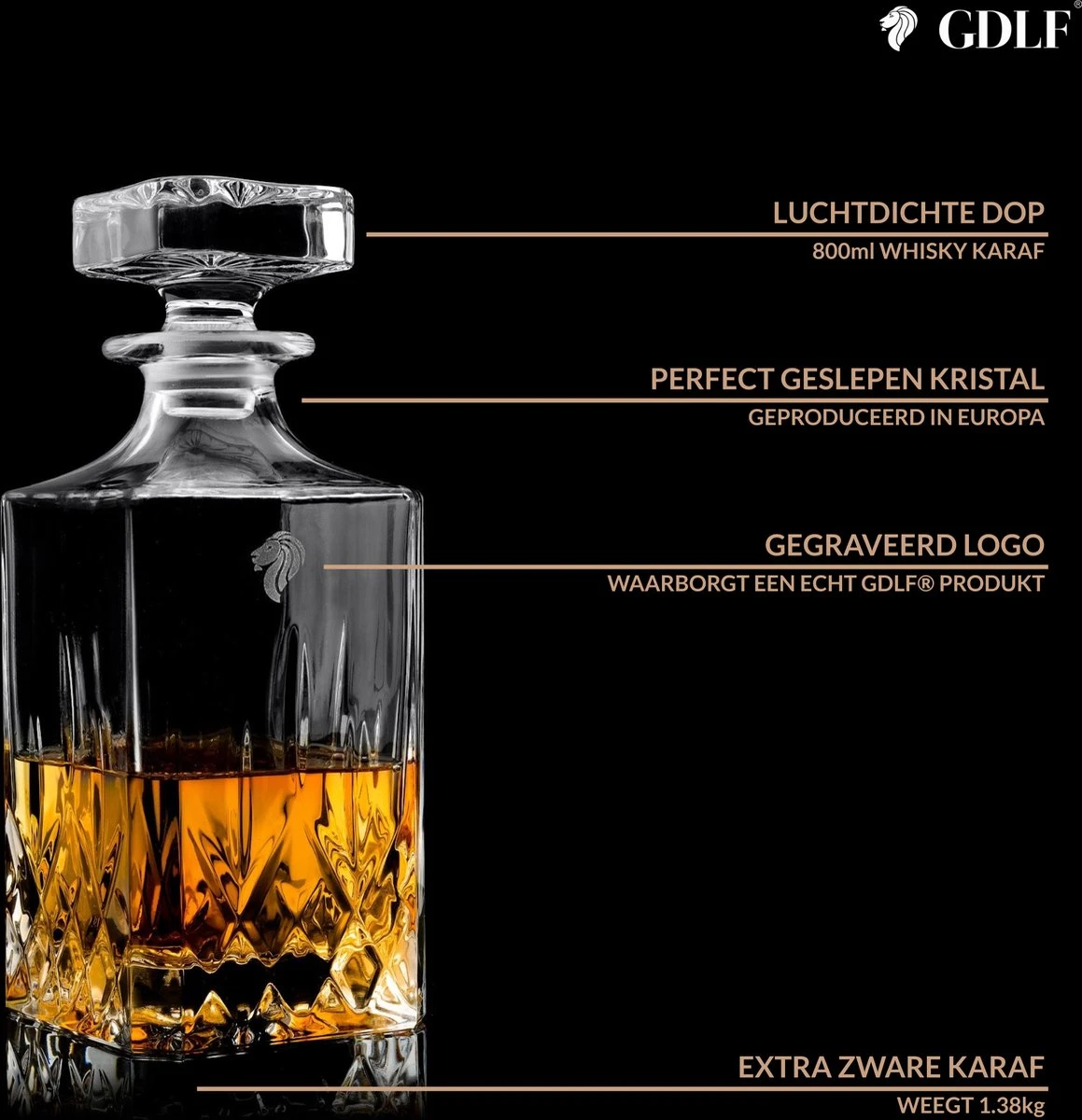 Bij GDLF® kiezen we voor kwaliteit boven kwantiteit. Je zult er trots op zijn deze luxe karaf te bezitten en te laten zien! GDLF® is voor degenen die het goede leven leiden, speciaal voor degenen die genieten van tijdloze producten van hoge kwaliteit.