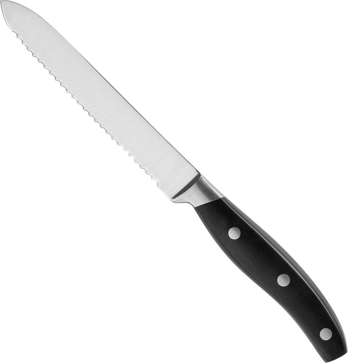 Het universele 13 cm mes met gekartelde rand is ideaal voor het snijden van brood en het snijden van delicaat voedsel. Het gekartelde mes snijdt moeiteloos door harde buitenkant, zachte binnenkant. Snijd tomaten, worstjes, brood en kaas met precisie – dit kleine, veelzijdige mes is ook perfect voor picknicks.