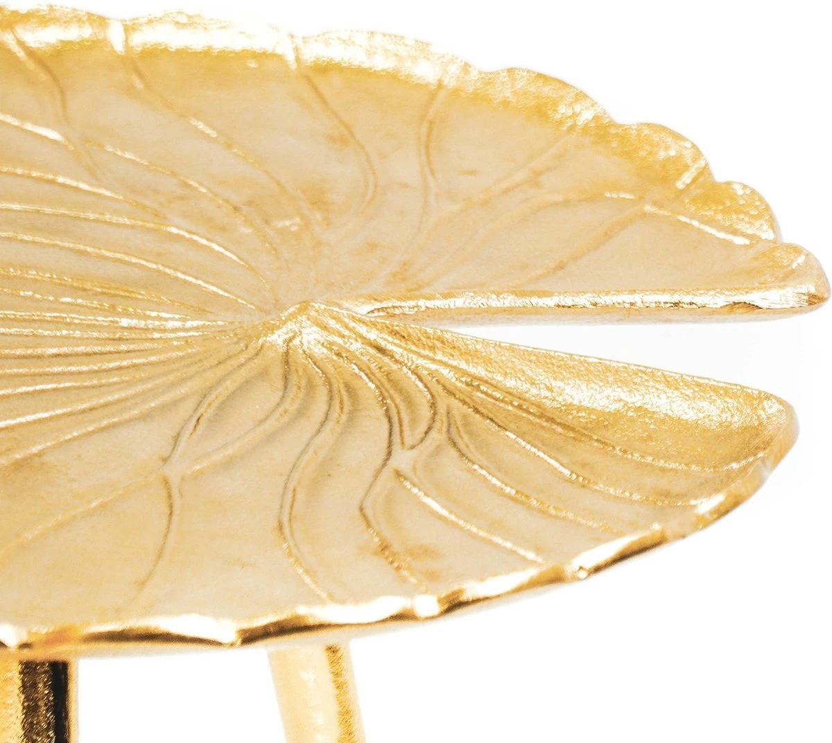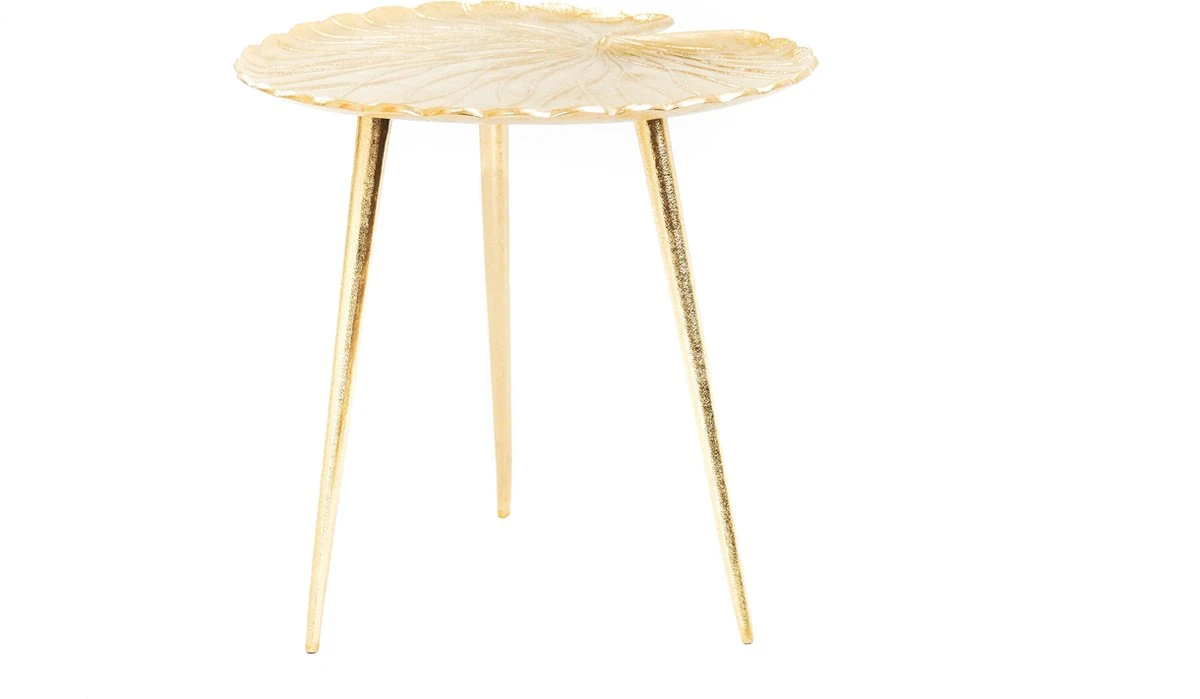 Hoe stralend kan een bijzettafeltje zijn? Dit gouden tafeltje is gemaakt van messing en heeft de vorm van een lelieblad. Het is gewoon een kunstwerk.