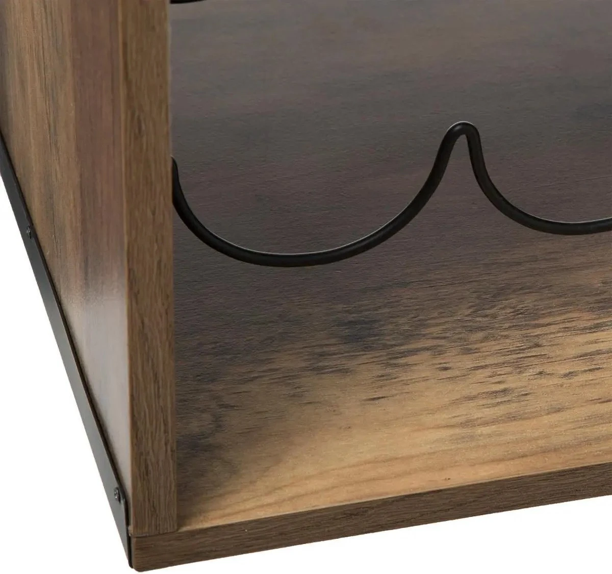 Flessenrek/wijnrek voor 6 flessen industrieel. Formaat: 31 x 31 x 31 cm. Materiaal: hout/metaal. Kleur: donkerbruin.