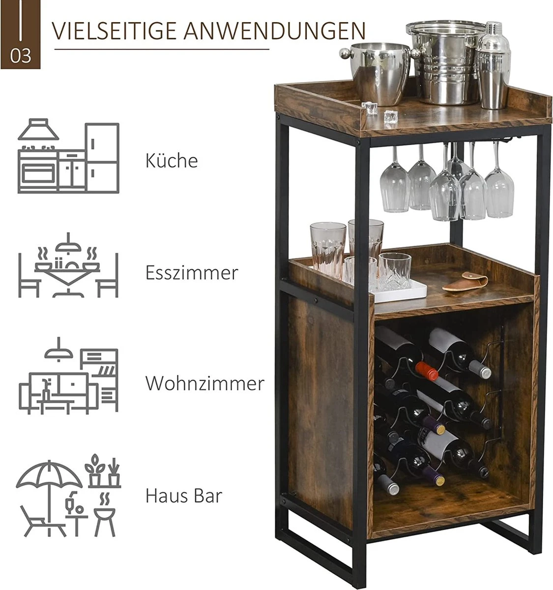 Ideale oplossing voor het opbergen van wijn: Met zijn wijnrek van 9 flessen biedt deze wijnkast een compacte oplossing voor het opbergen van uw wijncollectie. Het kan ook worden gebruikt als serveerbuffet of opbergbuffet in bar- en eetkamers.