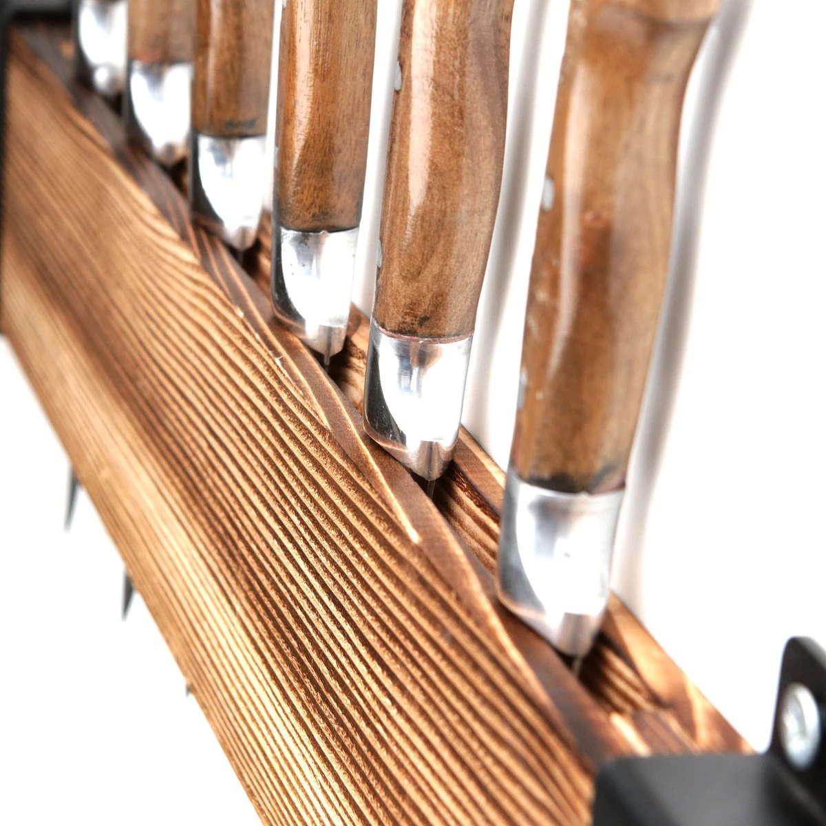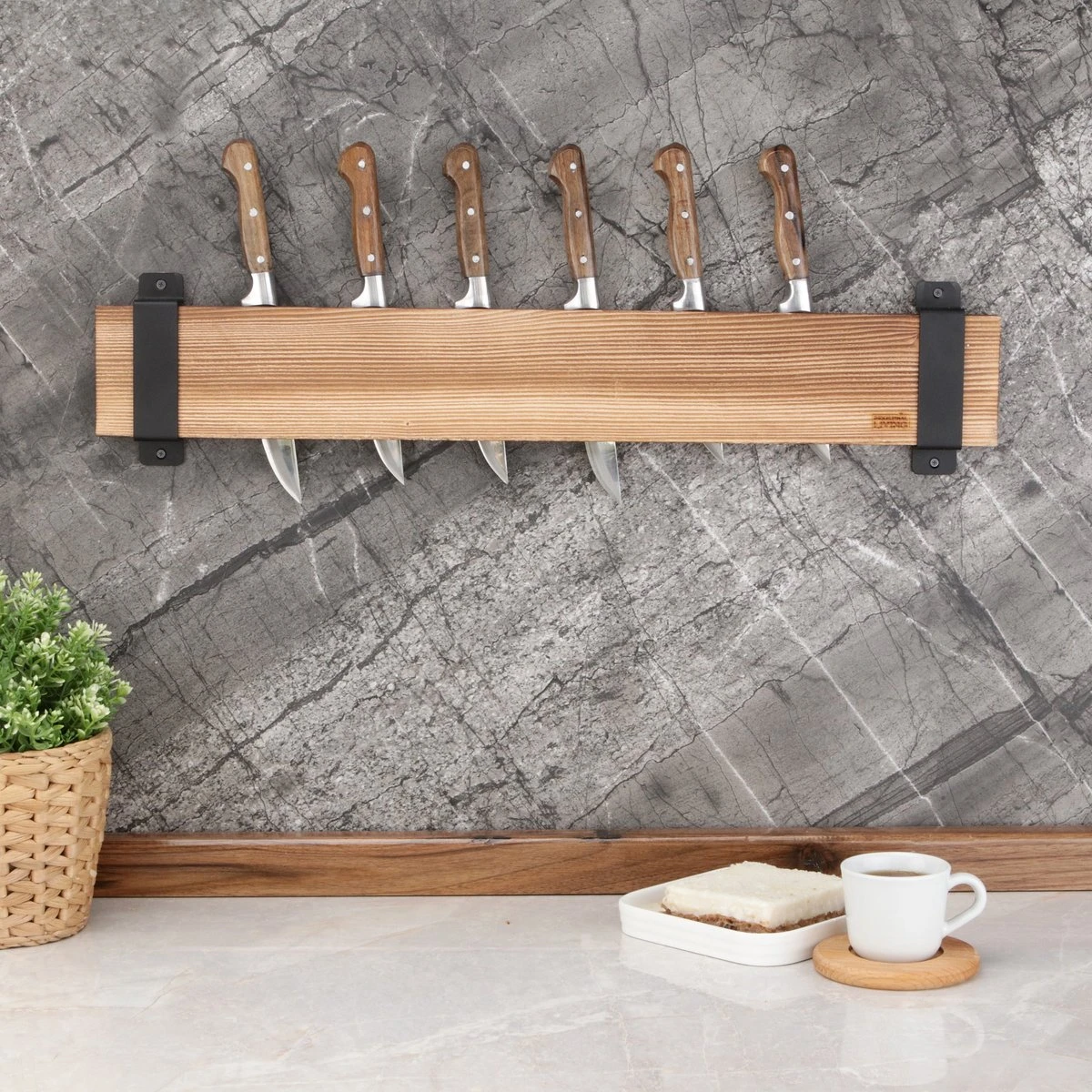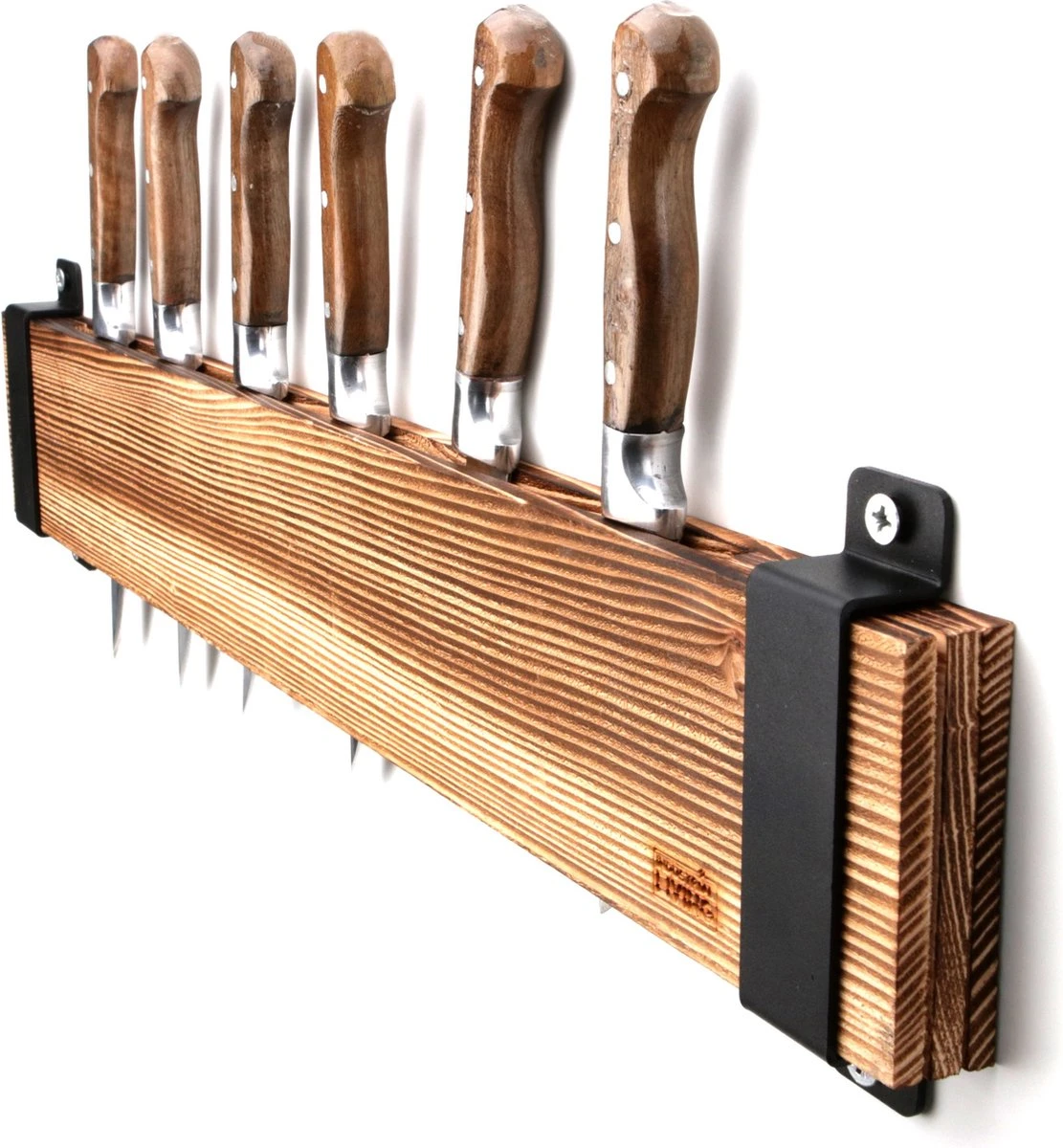 Bewaar al je scherpe messen op één veilige plek met deze houten messenhouder van Industrial Living. Bevestig de messenstrip eenvoudig en veilig aan je muur dankzij de stevige, zwart metalen bevestiging. Door de brede gleuf is het opbergen van zelfs je grootste mes geen probleem. Onze messenhouder is niet voorzien van magneten en je hoeft dus niet bang te zijn dat er andere metalen objecten aan blijven plakken. Of je nu op zoek bent naar een cadeau voor iemand die van koken houdt of voor je eigen keuken, deze messenopberger is de perfecte aanvulling op elke keuken.