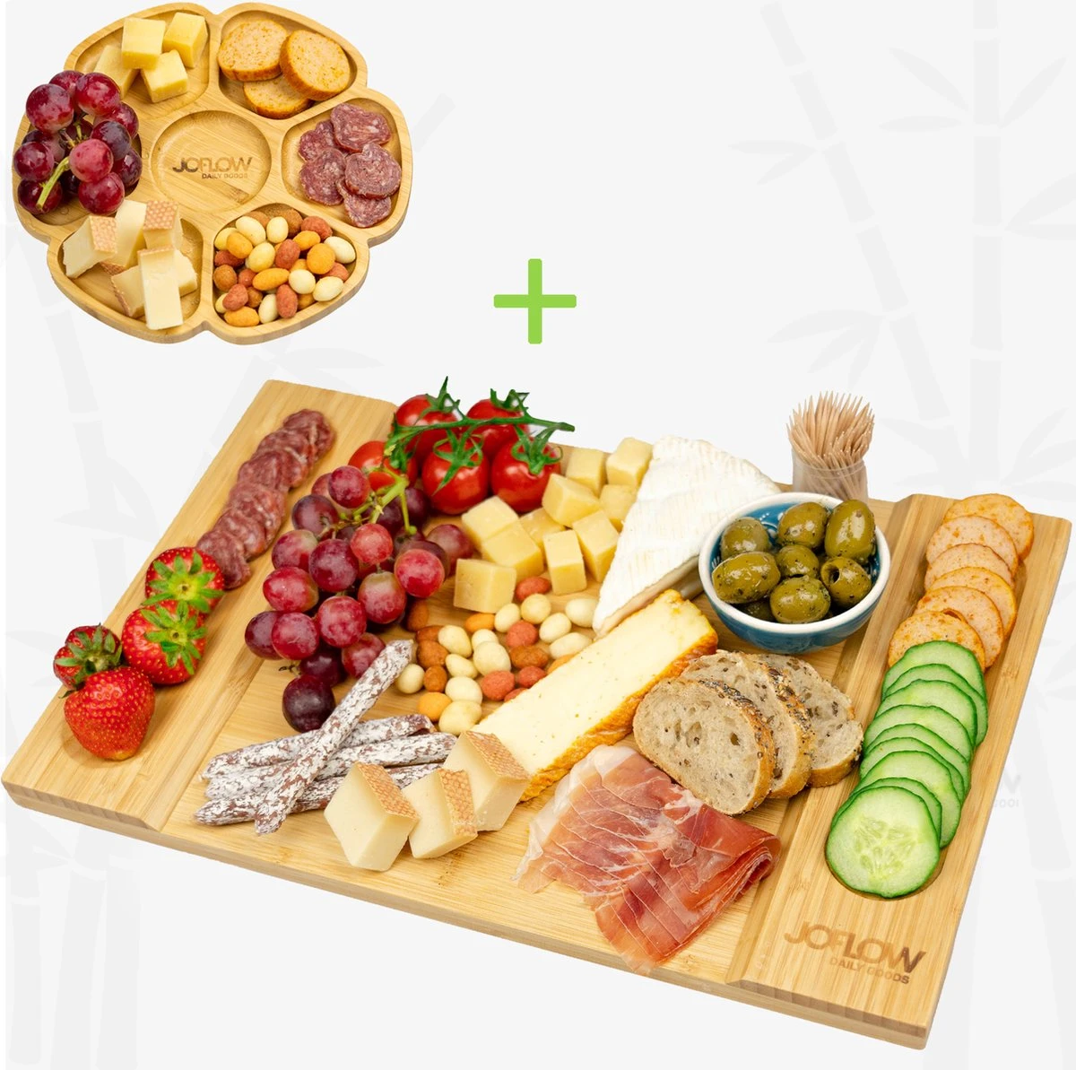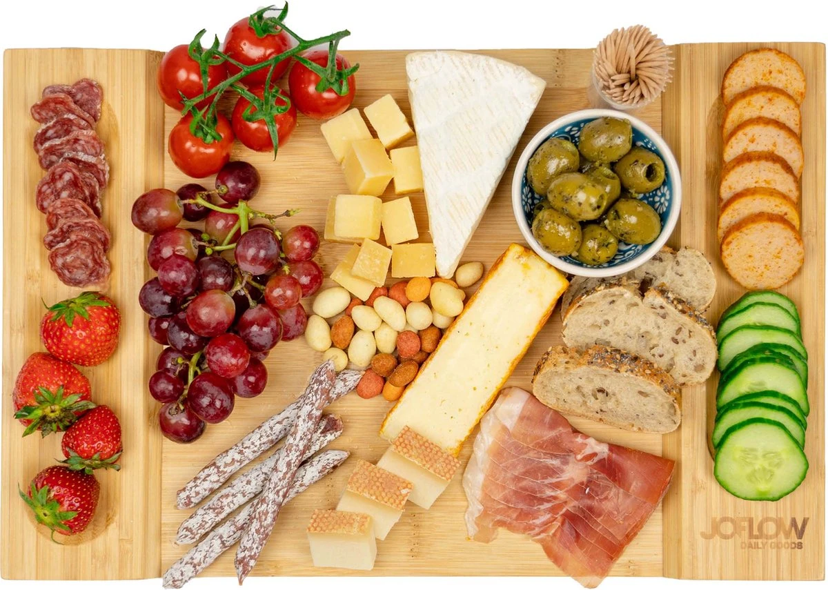 De gezelligheids-planken van JoFlow zijn gemaakt van 100% natuurlijk bamboe dat gemakkelijk schoon te maken en te onderhouden is. Zorgvuldig gemaakt met vakmanschap en vindingrijkheid van hoge kwaliteit – deze houten serveerplank is stevig en duurzaam met Anti-slip vaste lipjes aan de onderkant om zo verschuiven te voorkomen.