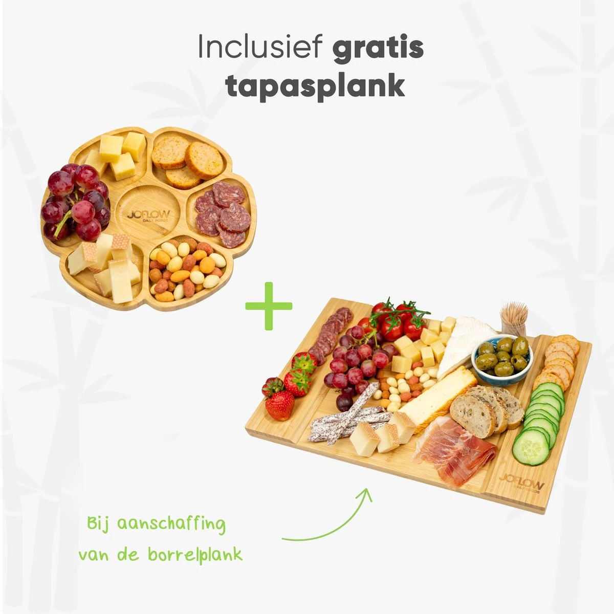 Een gezellige kaasplank of borrelplank met een gratis Tapas plankje! Een ‘’must’’ voor iedereen die van gezelligheid houdt of het perfecte housewarming cadeau!