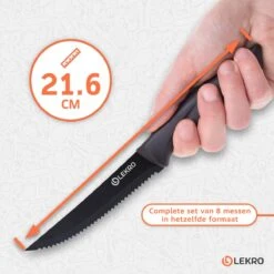 Deleca 6x Steakmessen – Vaatwasserbestendig – Tafelmessen – Messenset – Messen – Zwart / RVS – 22 Cm